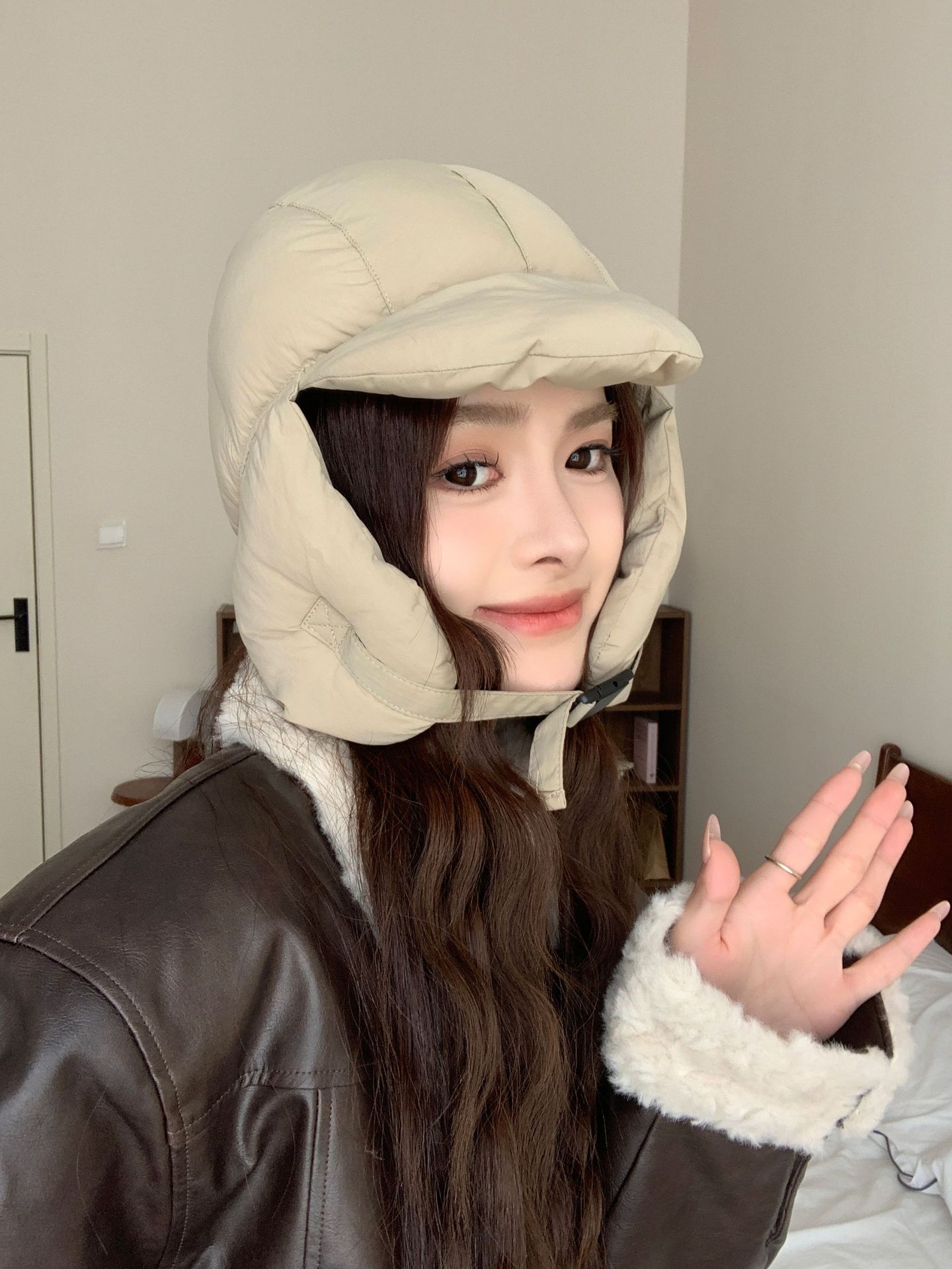 겨울용 다운 코튼 레이펑 모자 여성용 보온 방한 귀 보호 야외 라이딩 모자 비행 모자 가을 겨울 다용도 모자스토어 가기