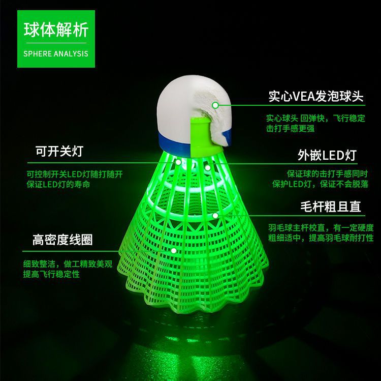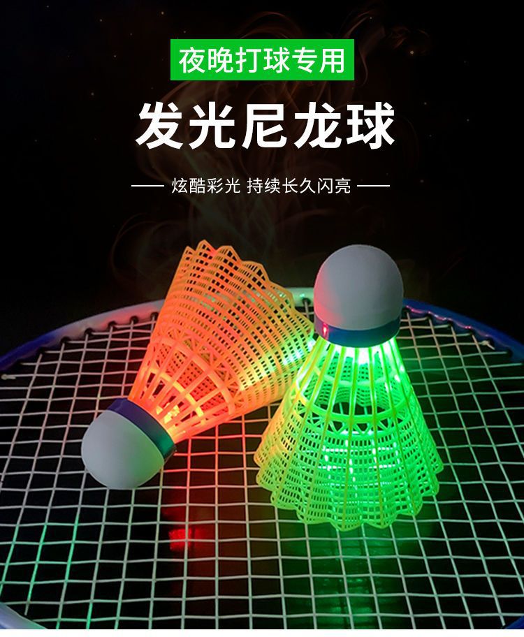 빛나는 배드민턴 제조업체는 이제 대량 발광 LED 야간 형광 방지 플라스틱 나일론 볼 재고 공급합니다.스토어 가기