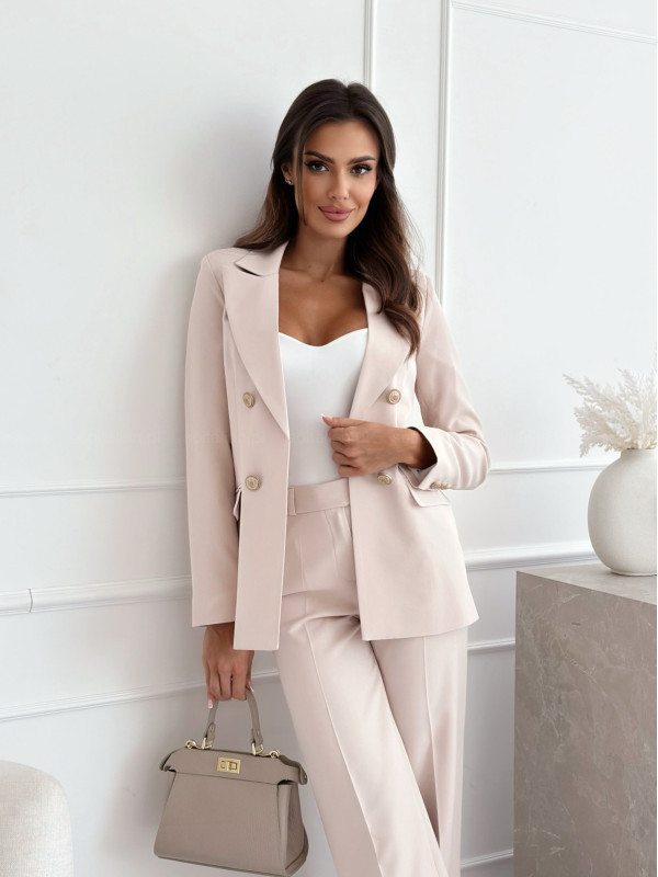 국경 간 대외 무역 유럽과 미국 여성 의류 아마존 AliExpress 2024 가을과 겨울 더블 브레스트 단색 패션 작은 세트 재킷