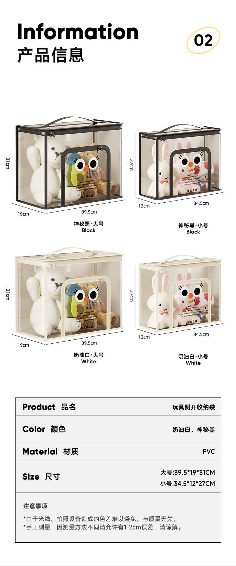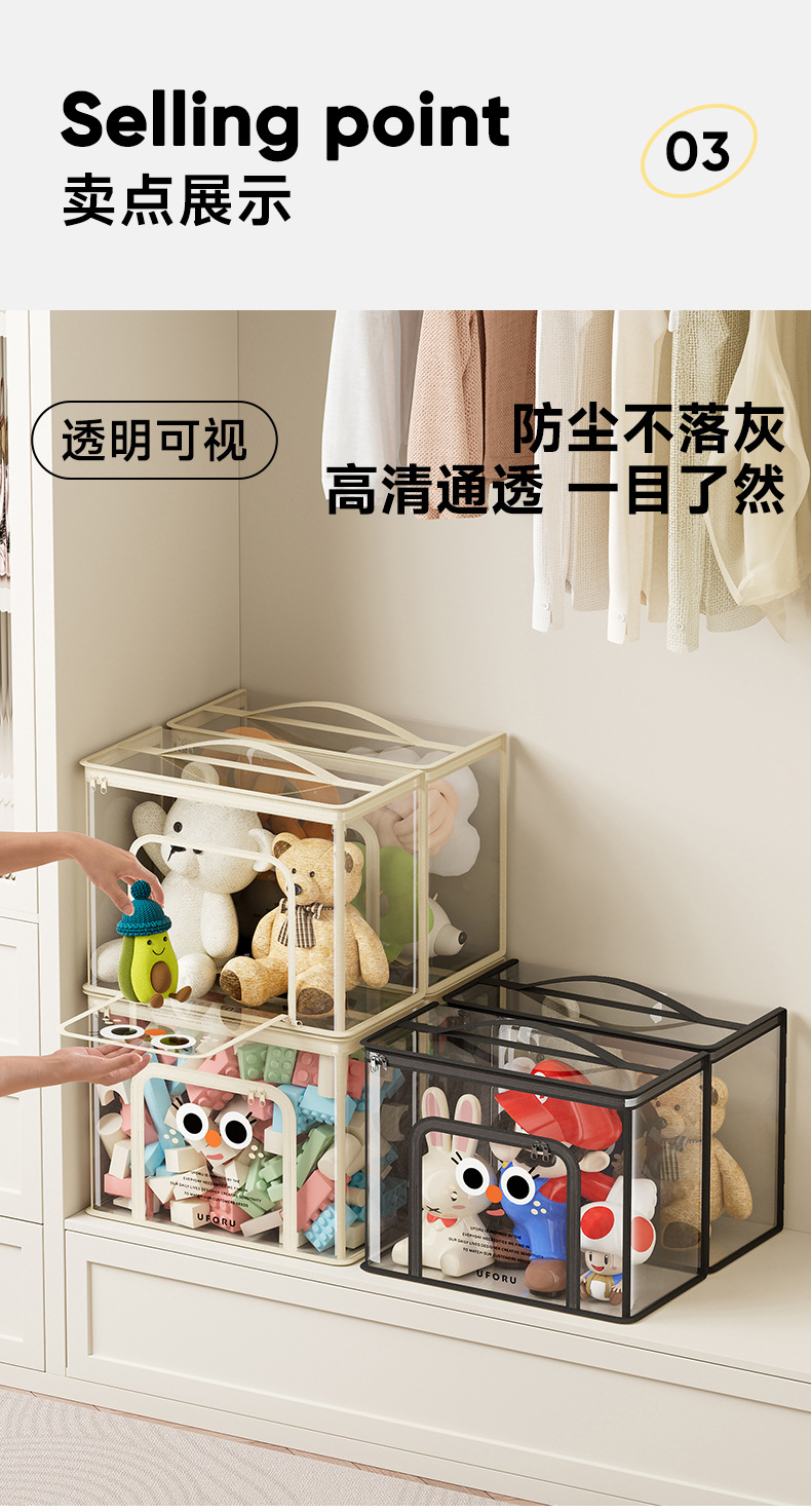 인형 저장 가방 투명 방진 방수 대용량 더블 오프닝 접는 디자인 휴대용 다기능 인형 저장 상자스토어 가기