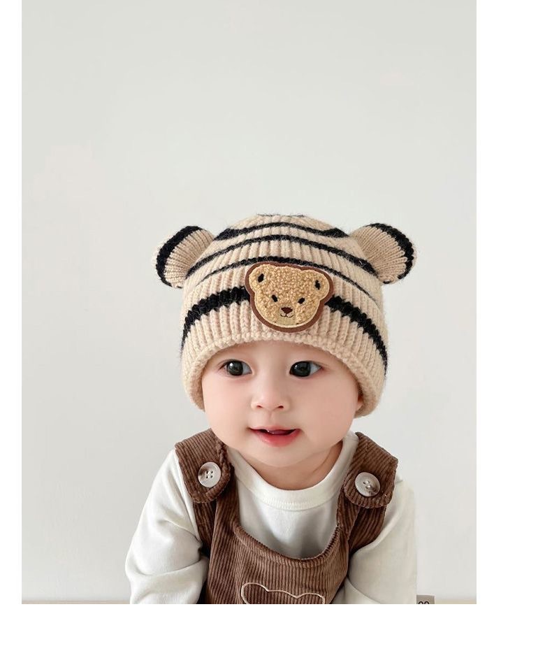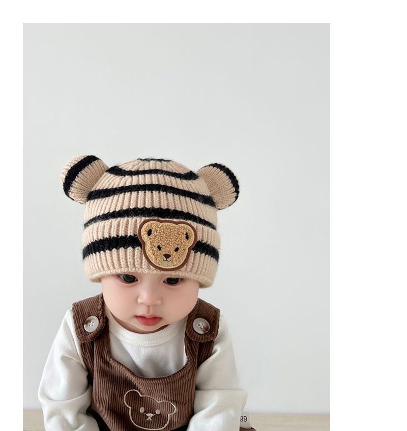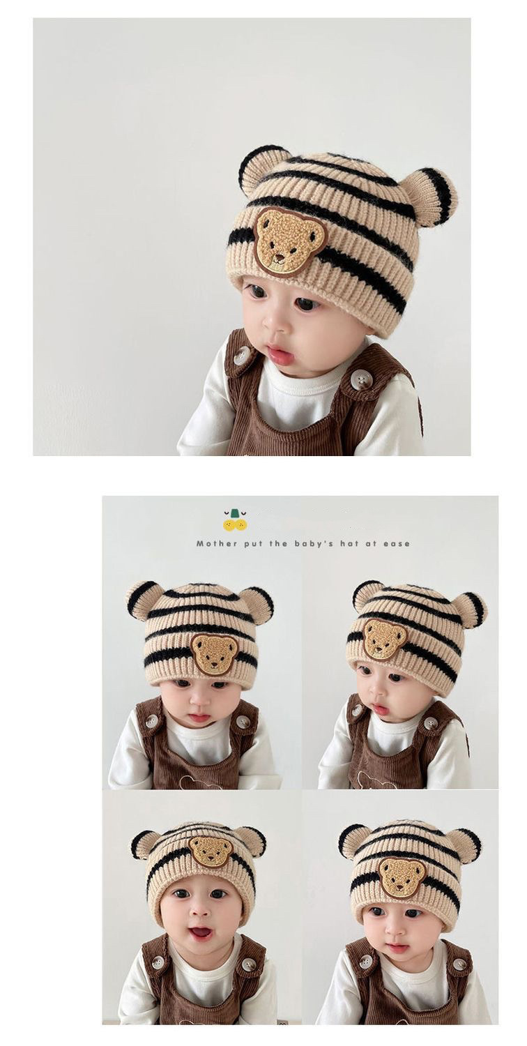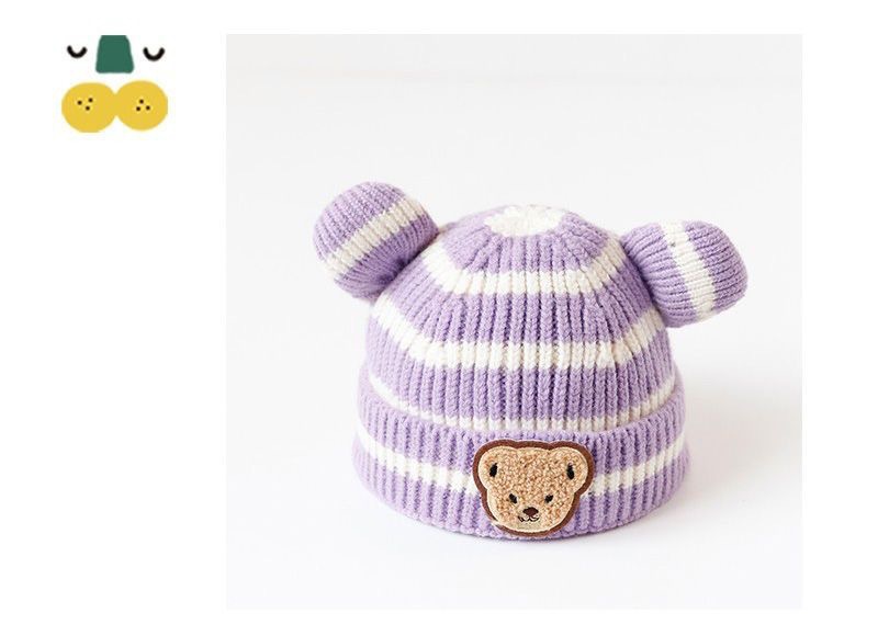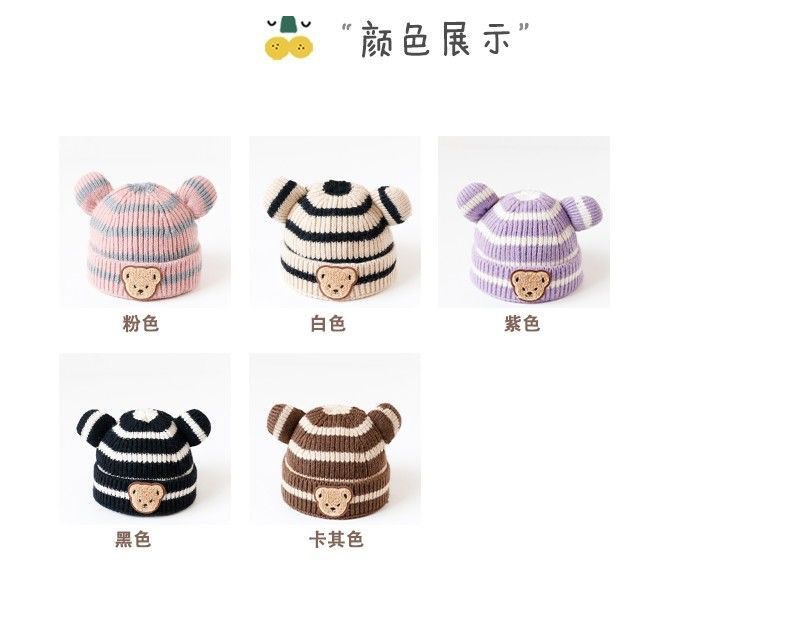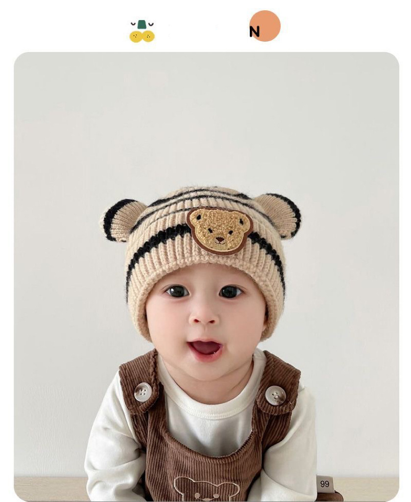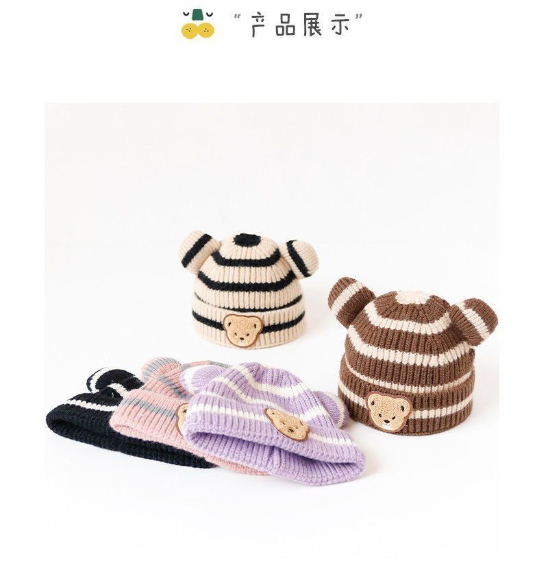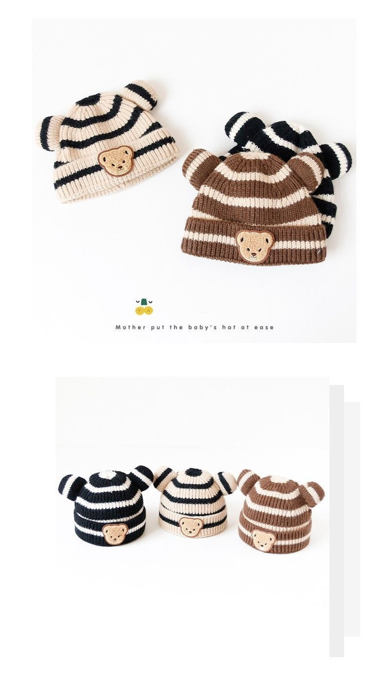 아기 가을과 겨울 한국 어린이 니트 모자 소년 소녀를위한 아기 줄무늬 곰 머리 울 모자 말린 멜론 피부 따뜻한 모자스토어 가기
