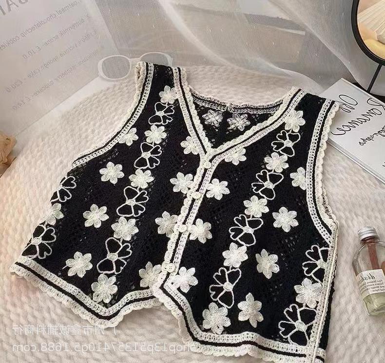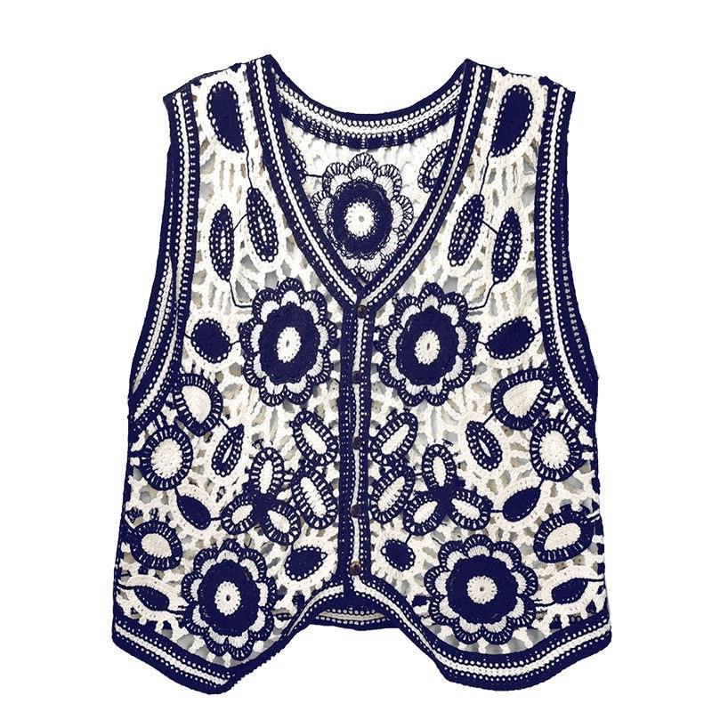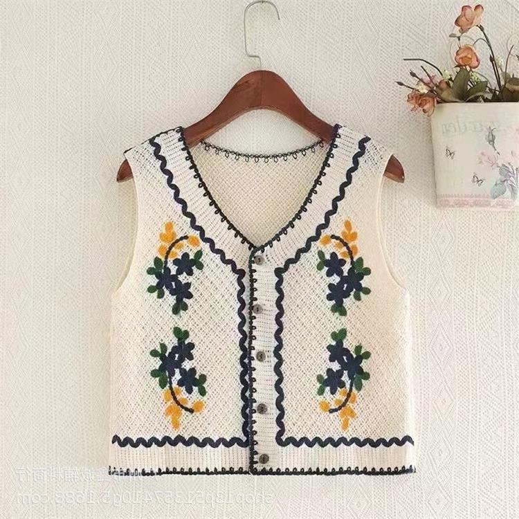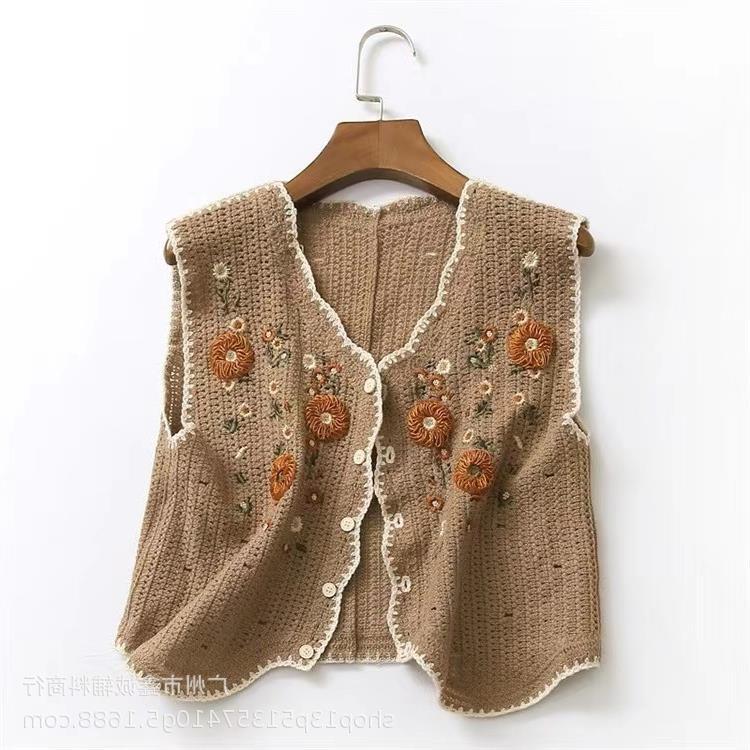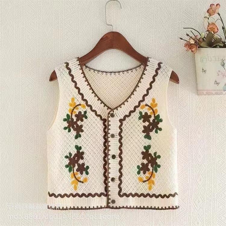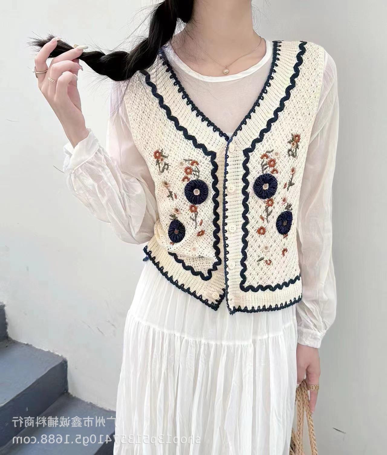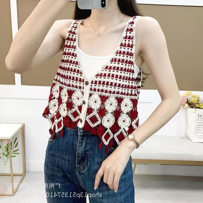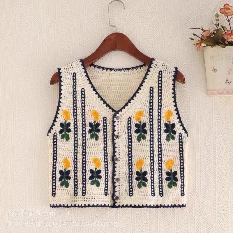 새로운 봄 여성 조끼 코트 니트 자수 중공 크로 셰 뜨개질 카디건 민족 스타일 조끼 외부 짧은 유행