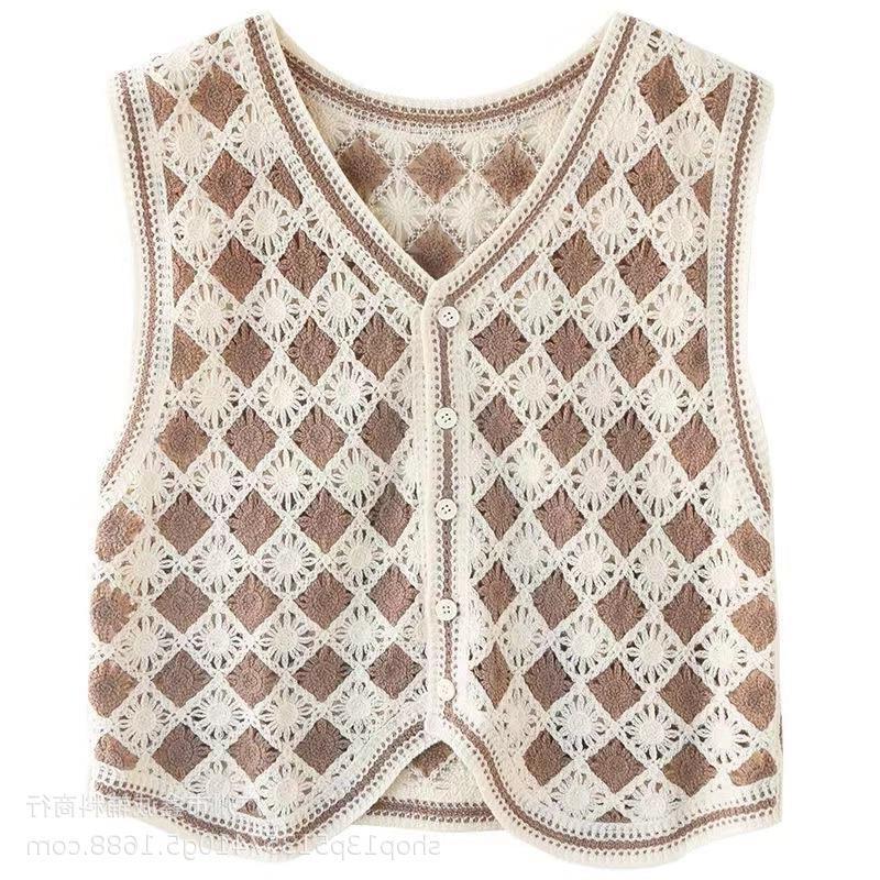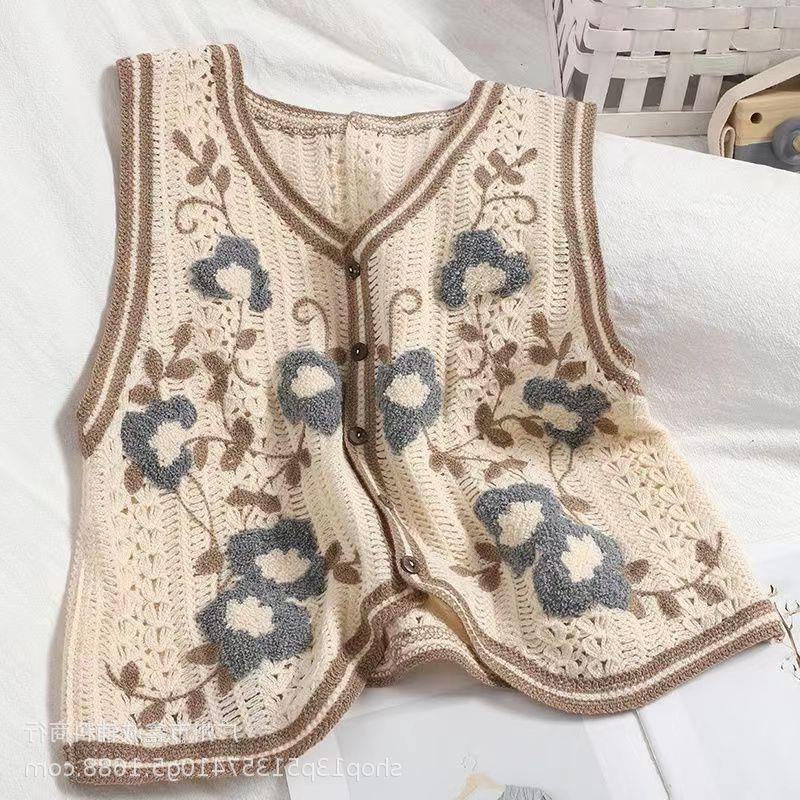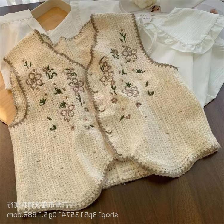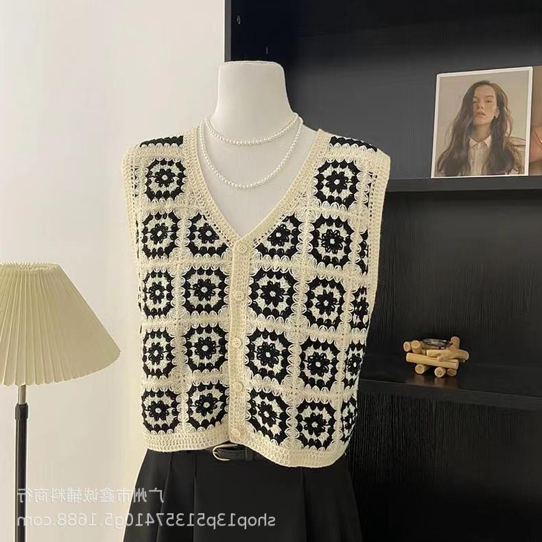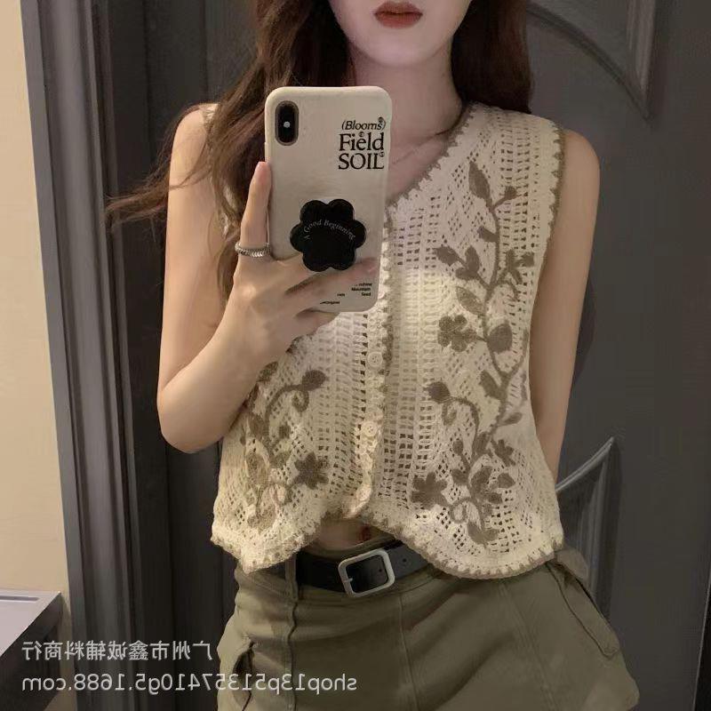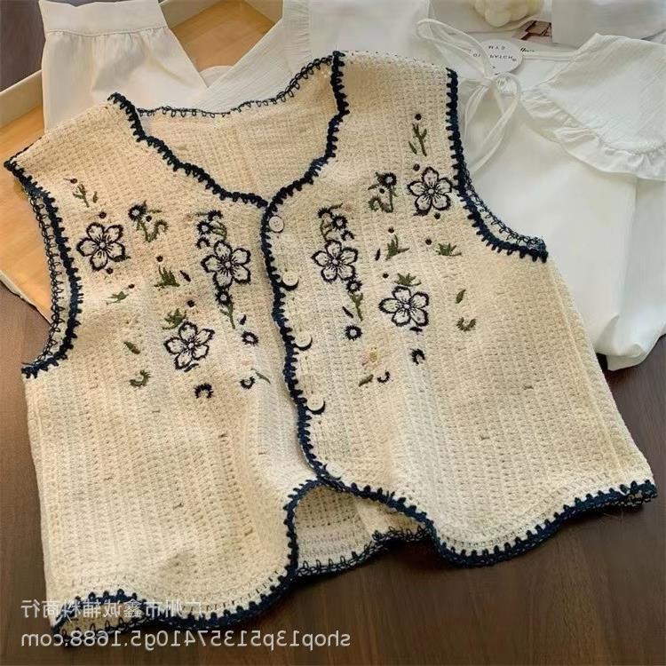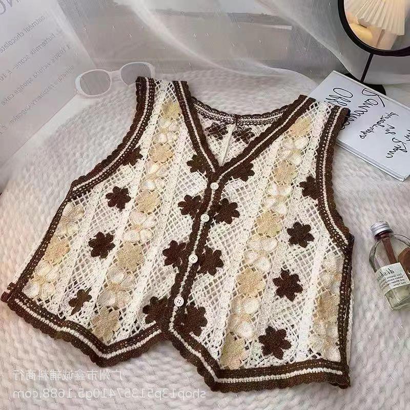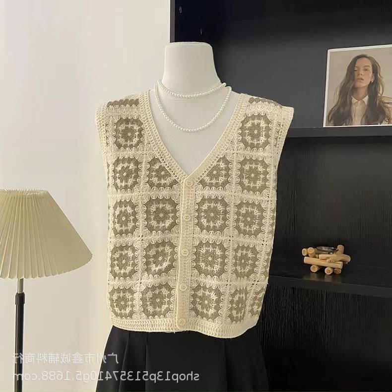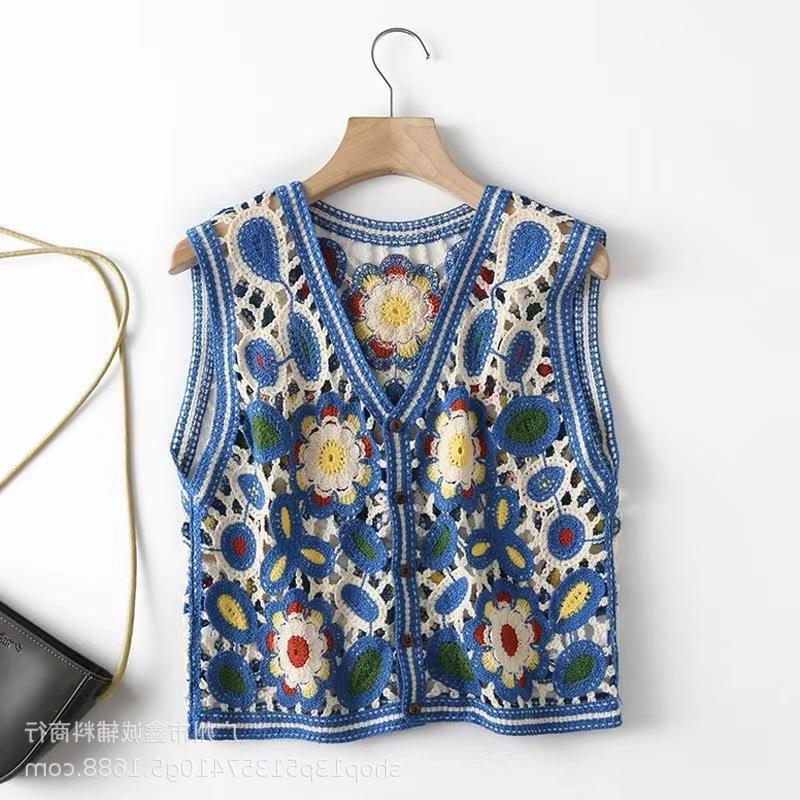 새로운 봄 여성 조끼 코트 니트 자수 중공 크로 셰 뜨개질 카디건 민족 스타일 조끼 외부 짧은 유행