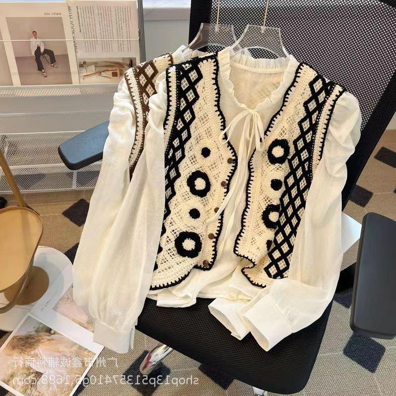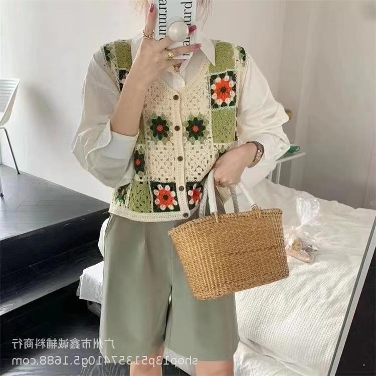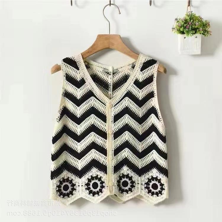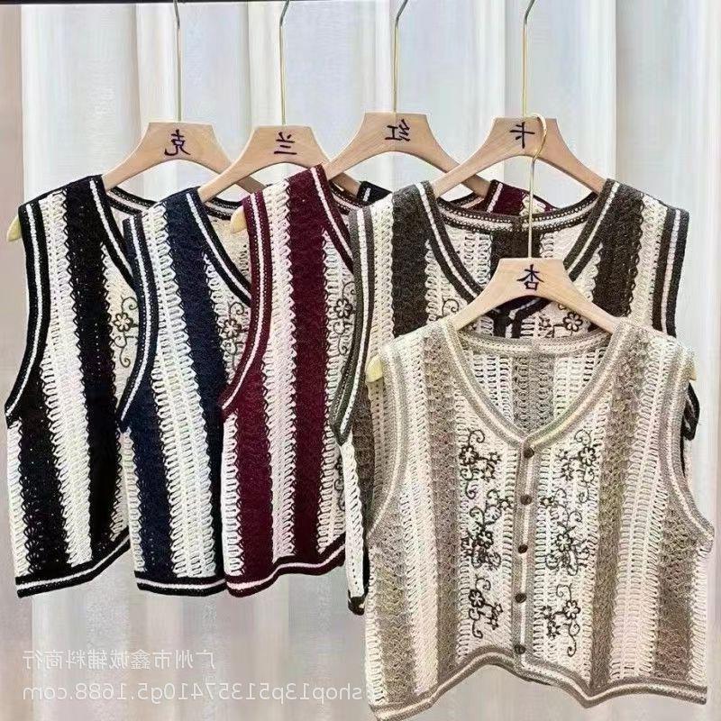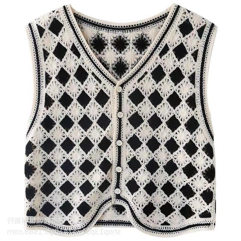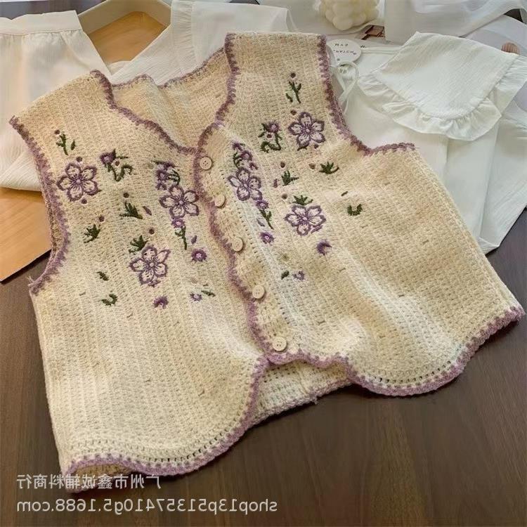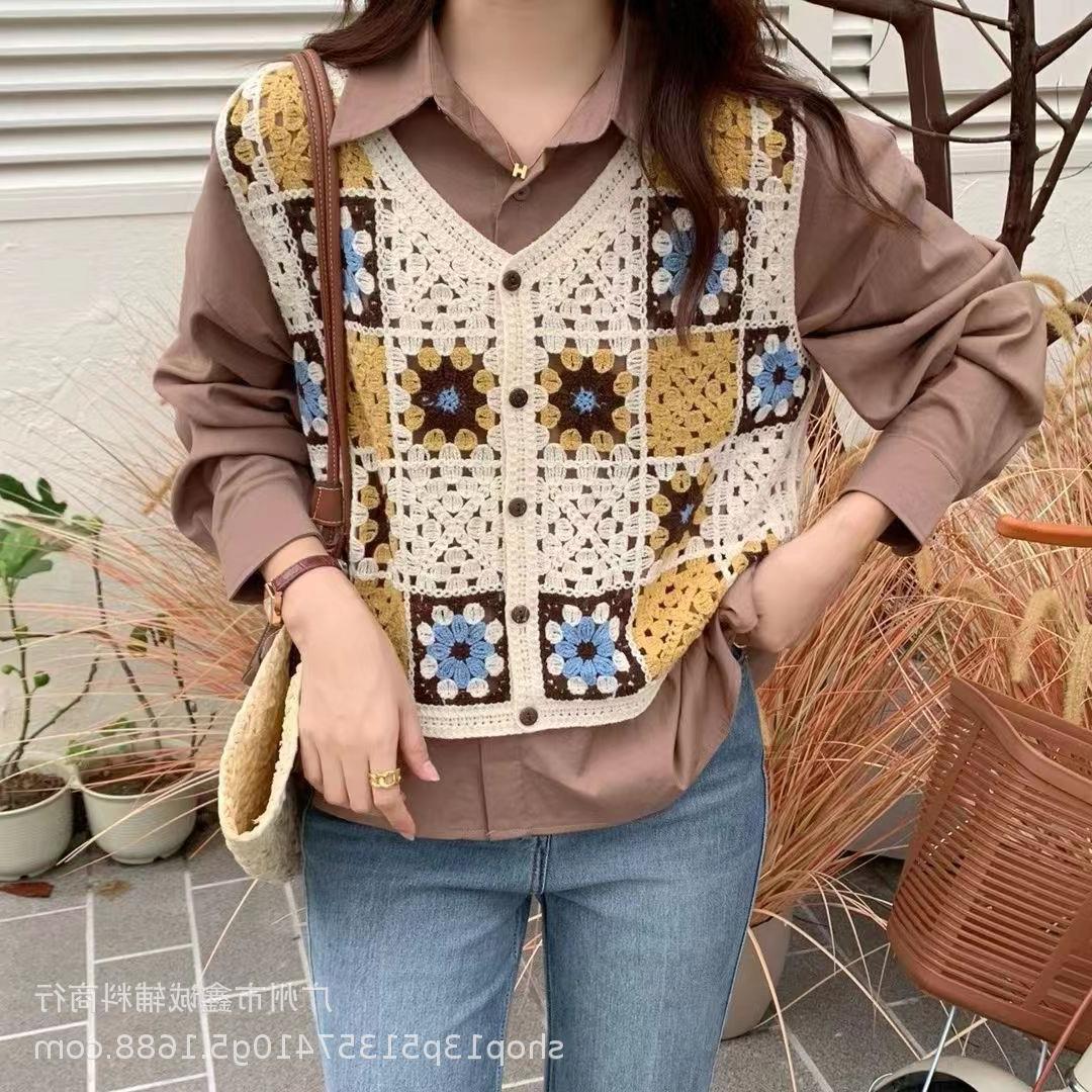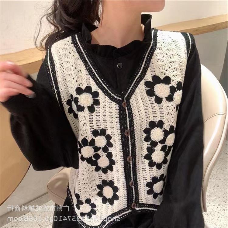 새로운 봄 여성 조끼 코트 니트 자수 중공 크로 셰 뜨개질 카디건 민족 스타일 조끼 외부 짧은 유행