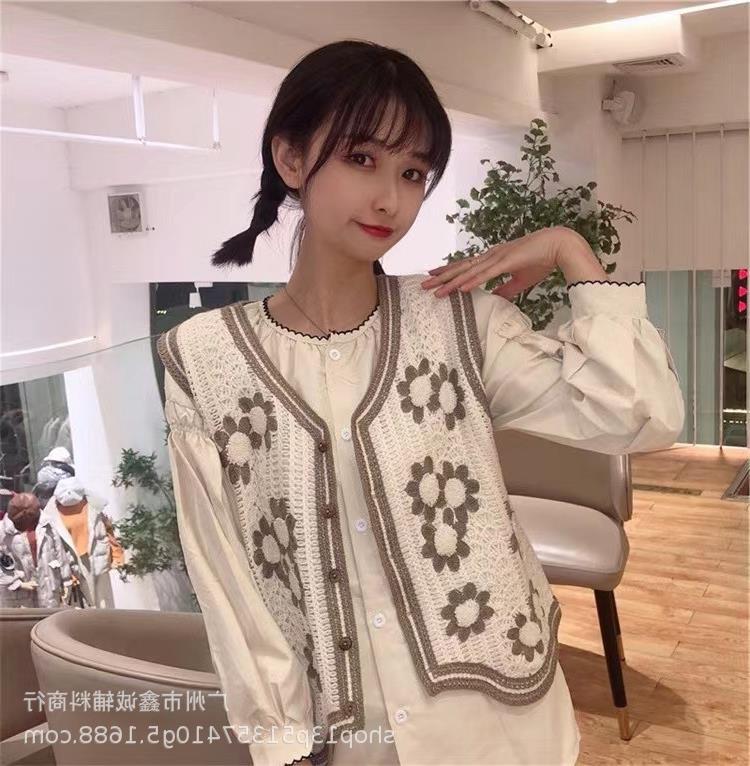 새로운 봄 여성 조끼 코트 니트 자수 중공 크로 셰 뜨개질 카디건 민족 스타일 조끼 외부 짧은 유행스토어 가기