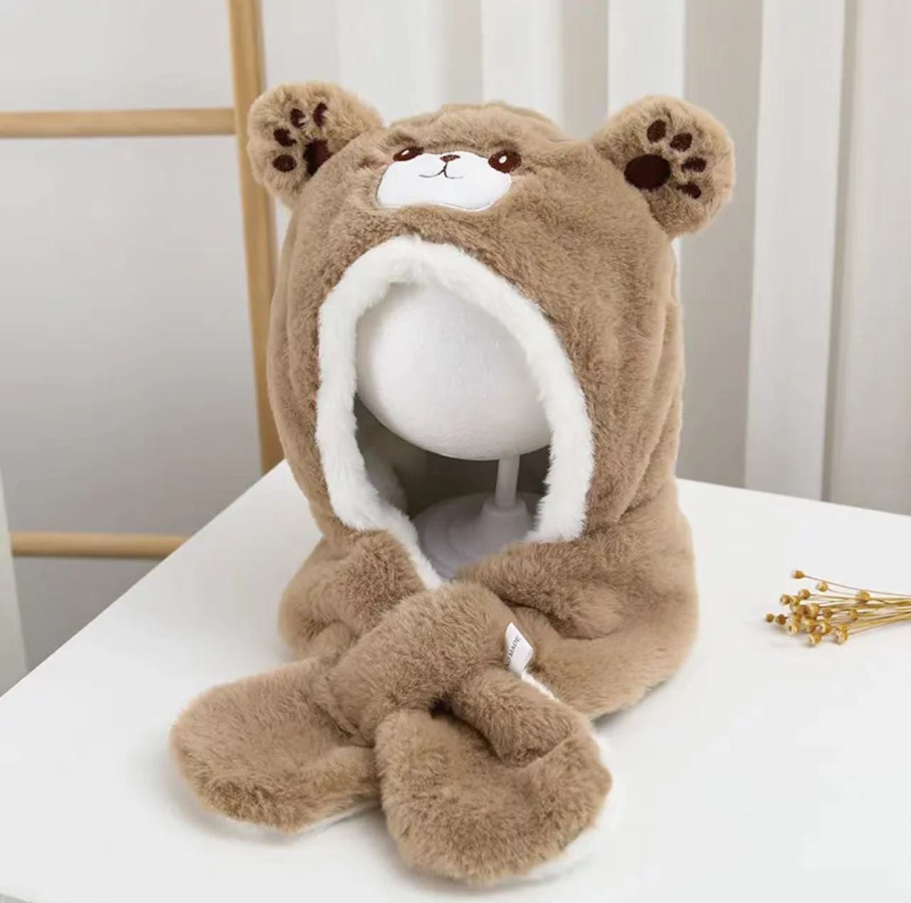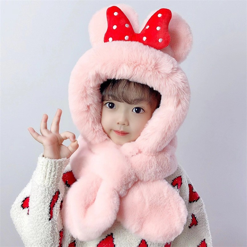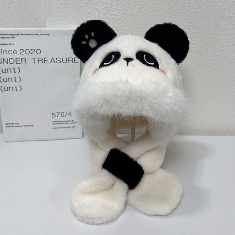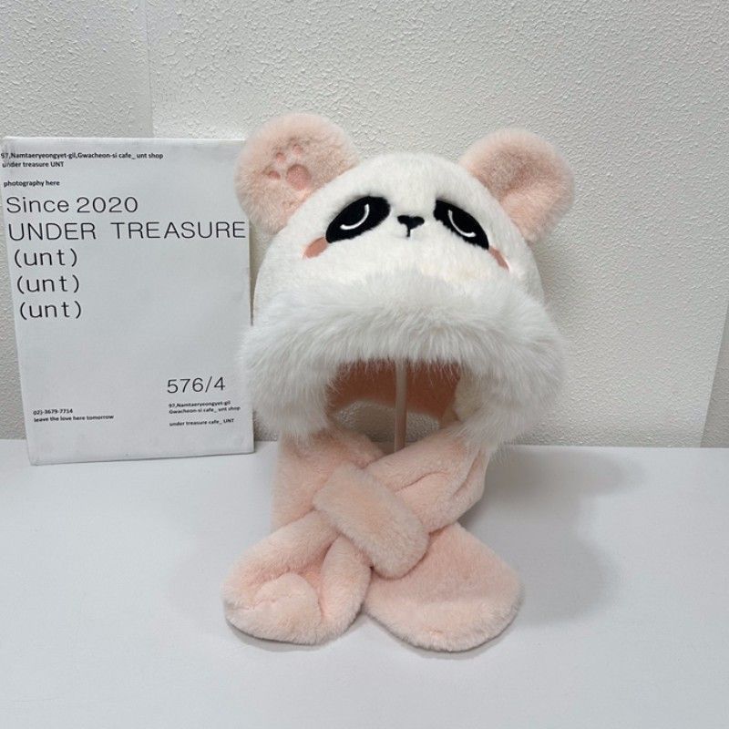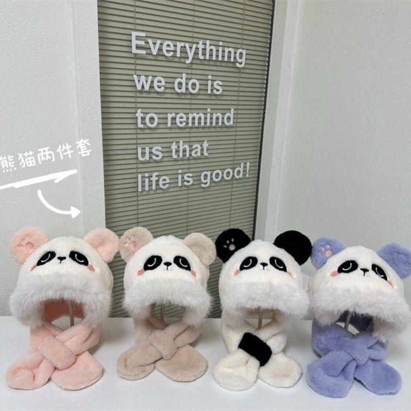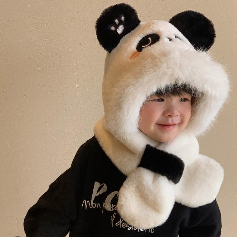 어린이 모자와 스카프 올인원 귀여운 팬더 만화 가을과 겨울의 소년 소녀를위한 따뜻한 귀 보호 아기 풀오버 모자