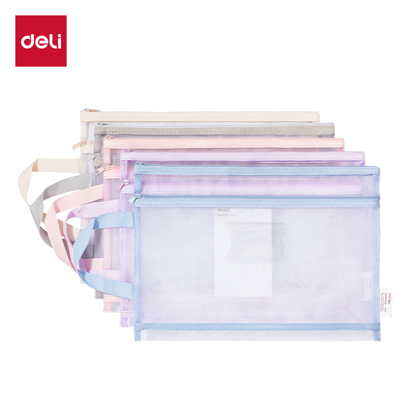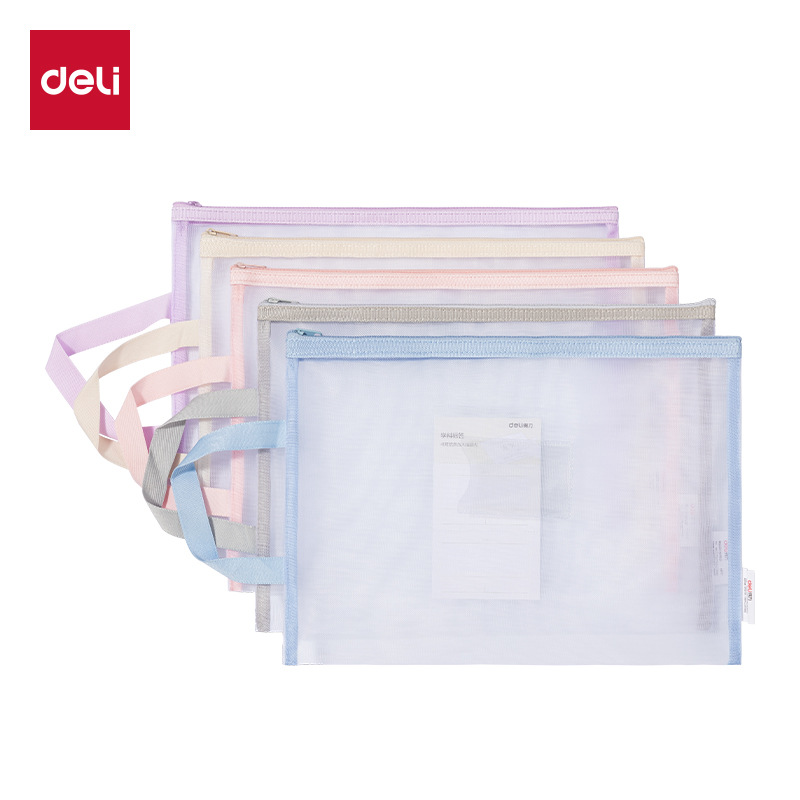 델리 PP117/118 메쉬 지퍼 가방 휴대용 파일 가방 A4 대용량 싱글/더블 학생 저장 가방