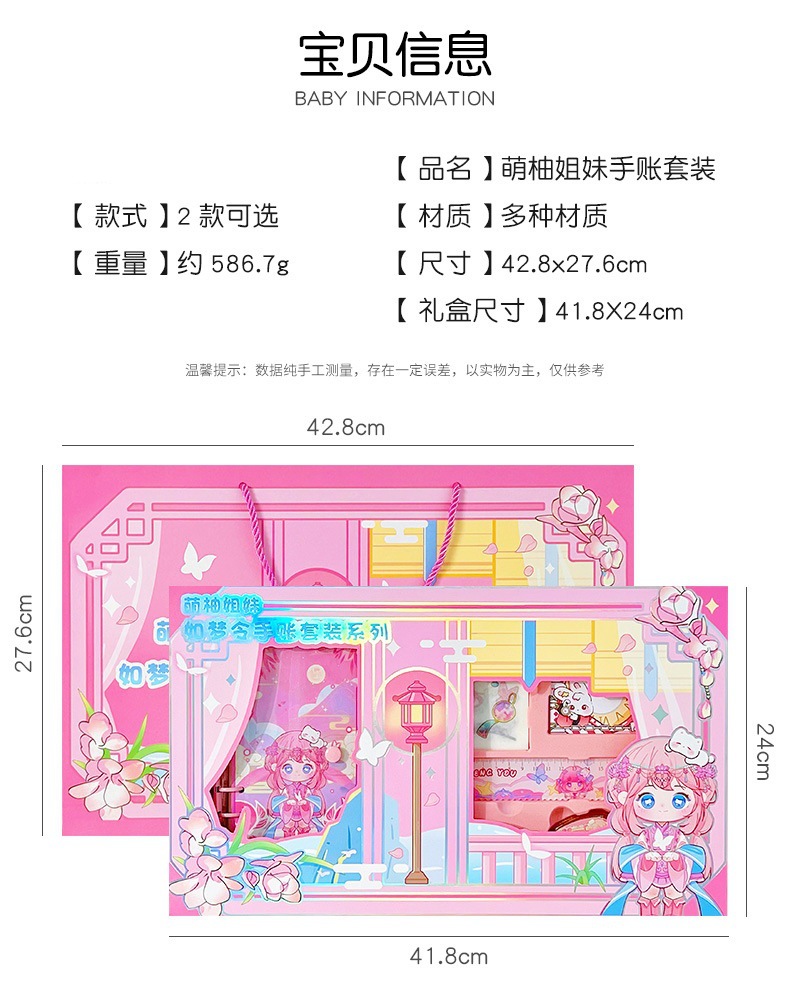 Meng Pomelo 자매 손 계정 세트 소녀 어린이 손 계정 선물 귀여운 노트북 스티커 테이프 전체 세트 선물 상자스토어 가기
