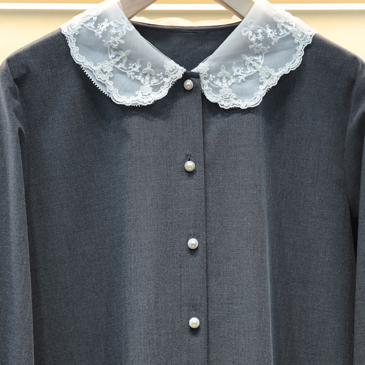 Mo Shu Wei Ya 2024 가을 새 레이스 자수 인형 칼라 네일 비드 버클 긴 소매 셔츠 여성 1502D스토어 가기