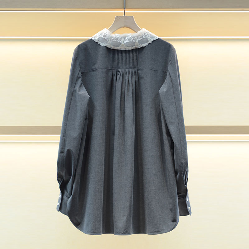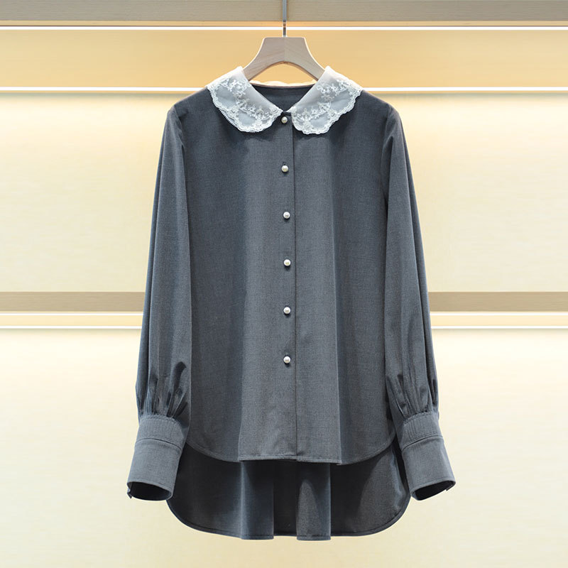 Mo Shu Wei Ya 2024 가을 새 레이스 자수 인형 칼라 네일 비드 버클 긴 소매 셔츠 여성 1502D
