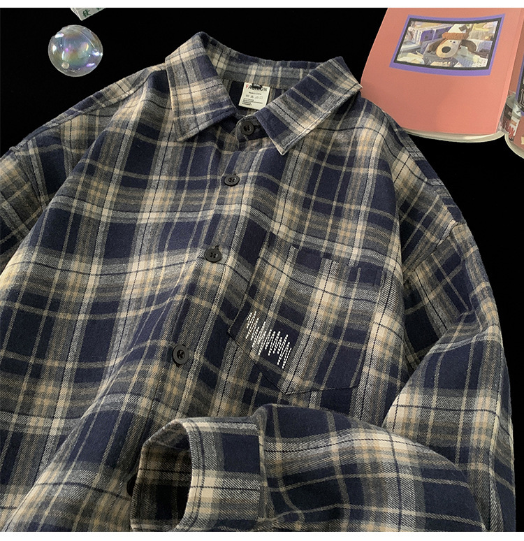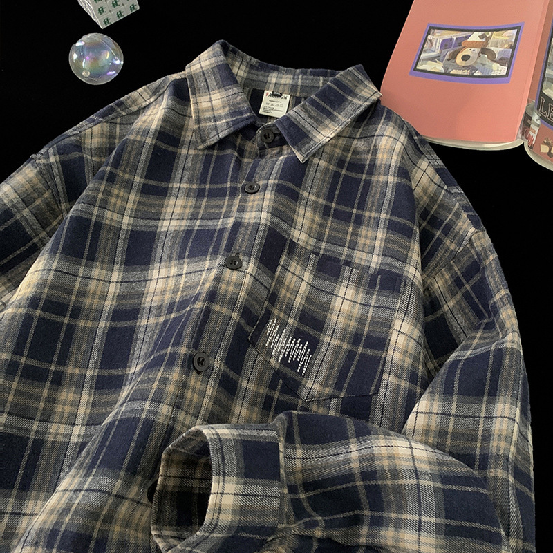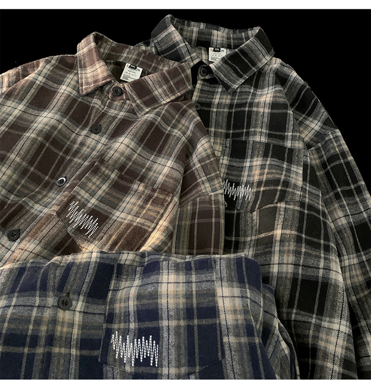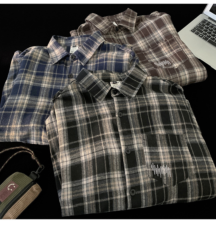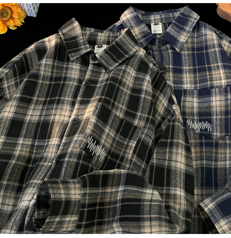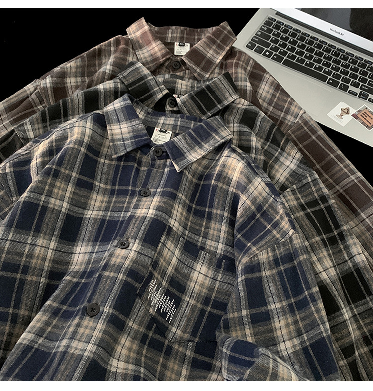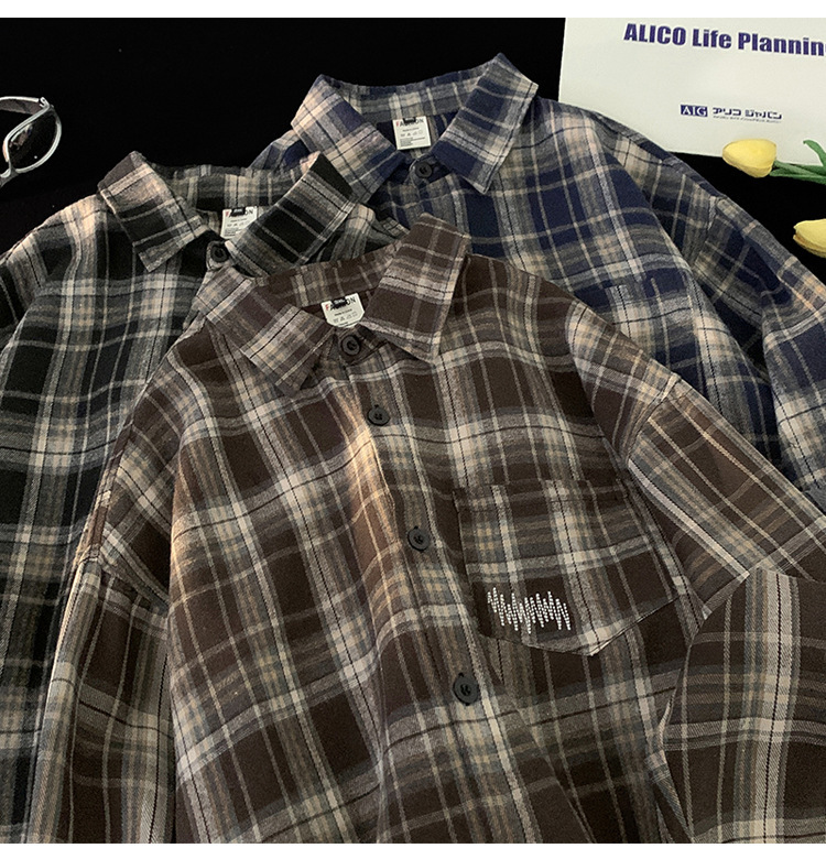 미국 격자 무늬 셔츠 남자의 봄과 가을 새로운 패션 브랜드 올 매치 레트로 긴 소매 셔츠 하이 스트리트 캐주얼 재킷 탑