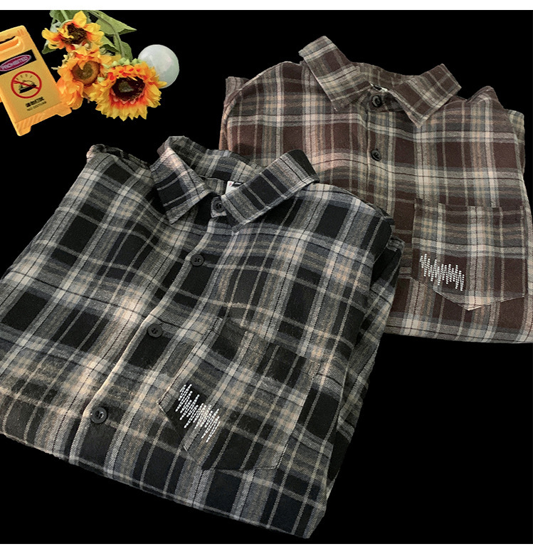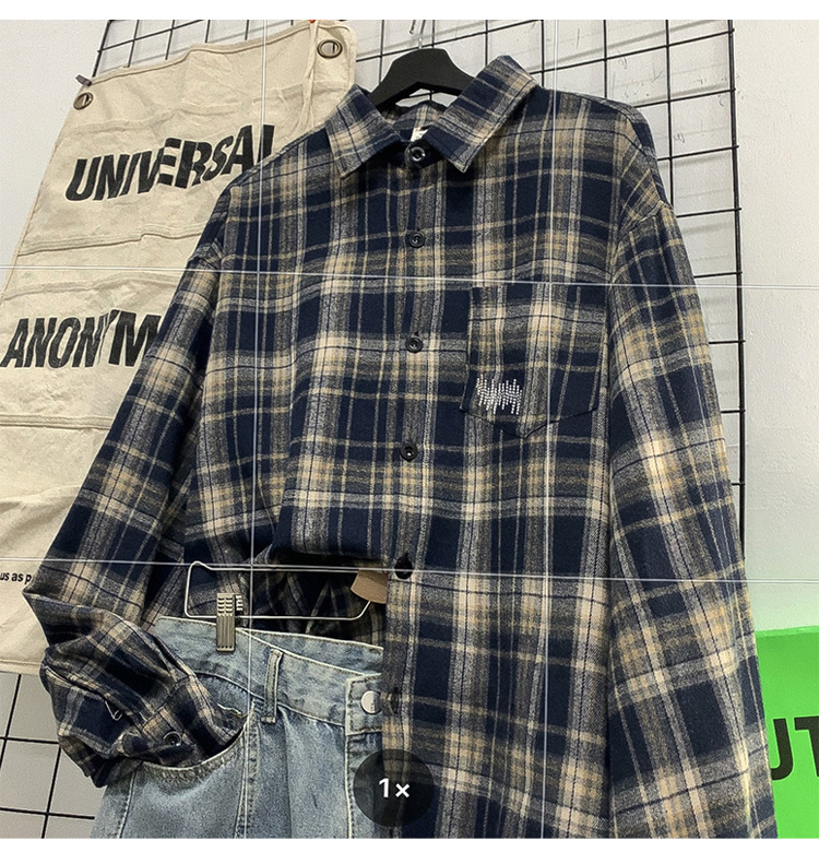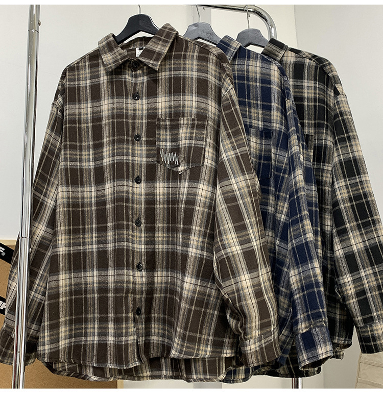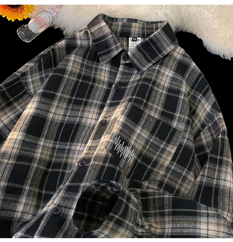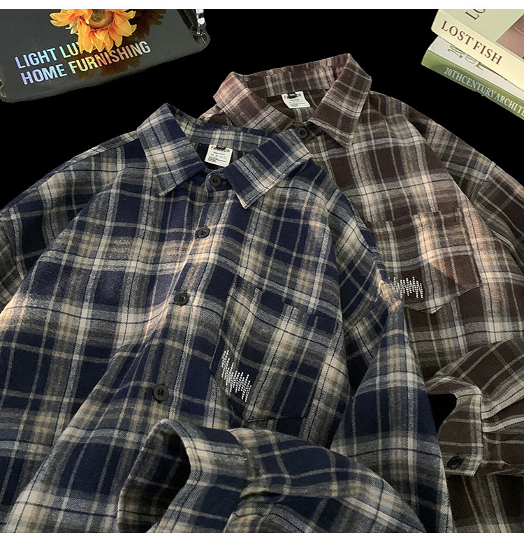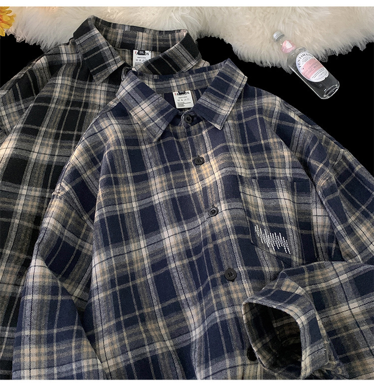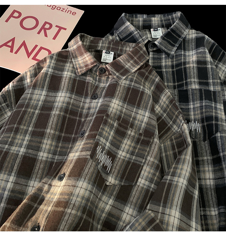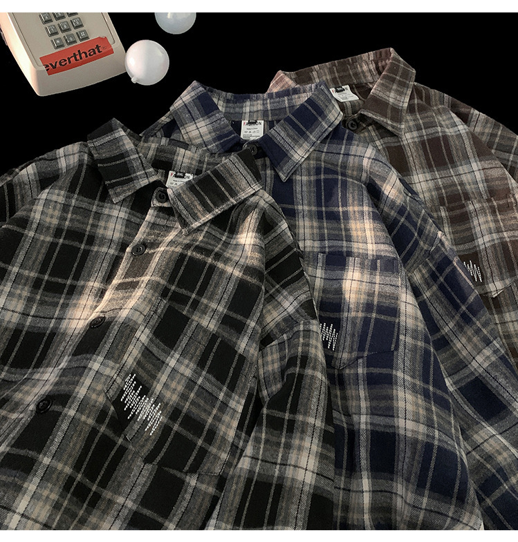 미국 격자 무늬 셔츠 남자의 봄과 가을 새로운 패션 브랜드 올 매치 레트로 긴 소매 셔츠 하이 스트리트 캐주얼 재킷 탑