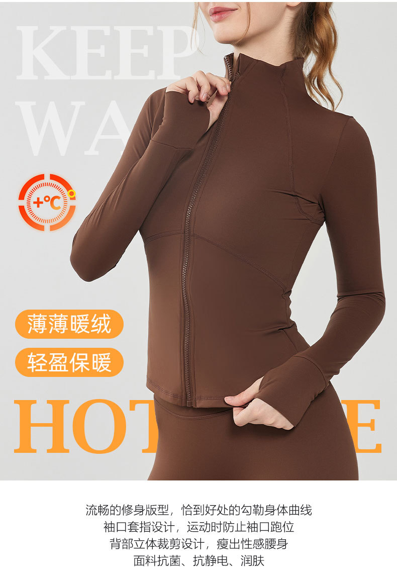 가을과 겨울 따뜻한 기모 요가 자켓 여성의 슬림 핏 슬리밍 스포츠 긴팔 지퍼 달리기 피트니스 탑스토어 가기