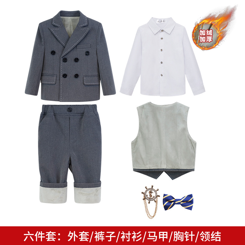 • [후리스셔츠] 그레이 6종세트 (후리스셔츠+재킷+조끼+바지+나비넥타이+브로치)