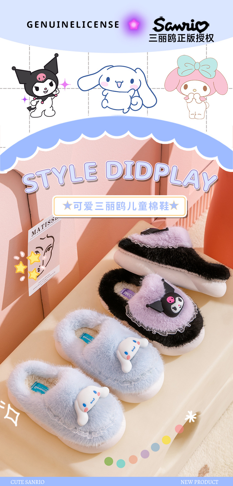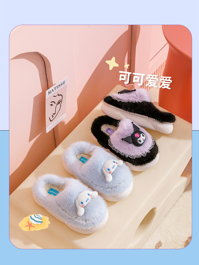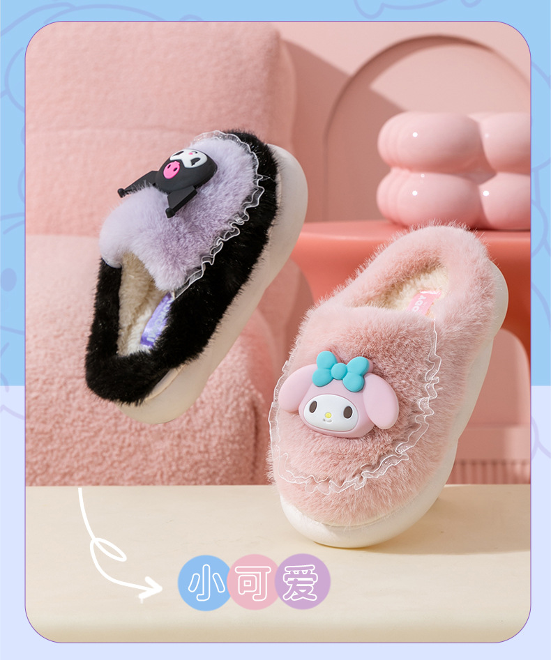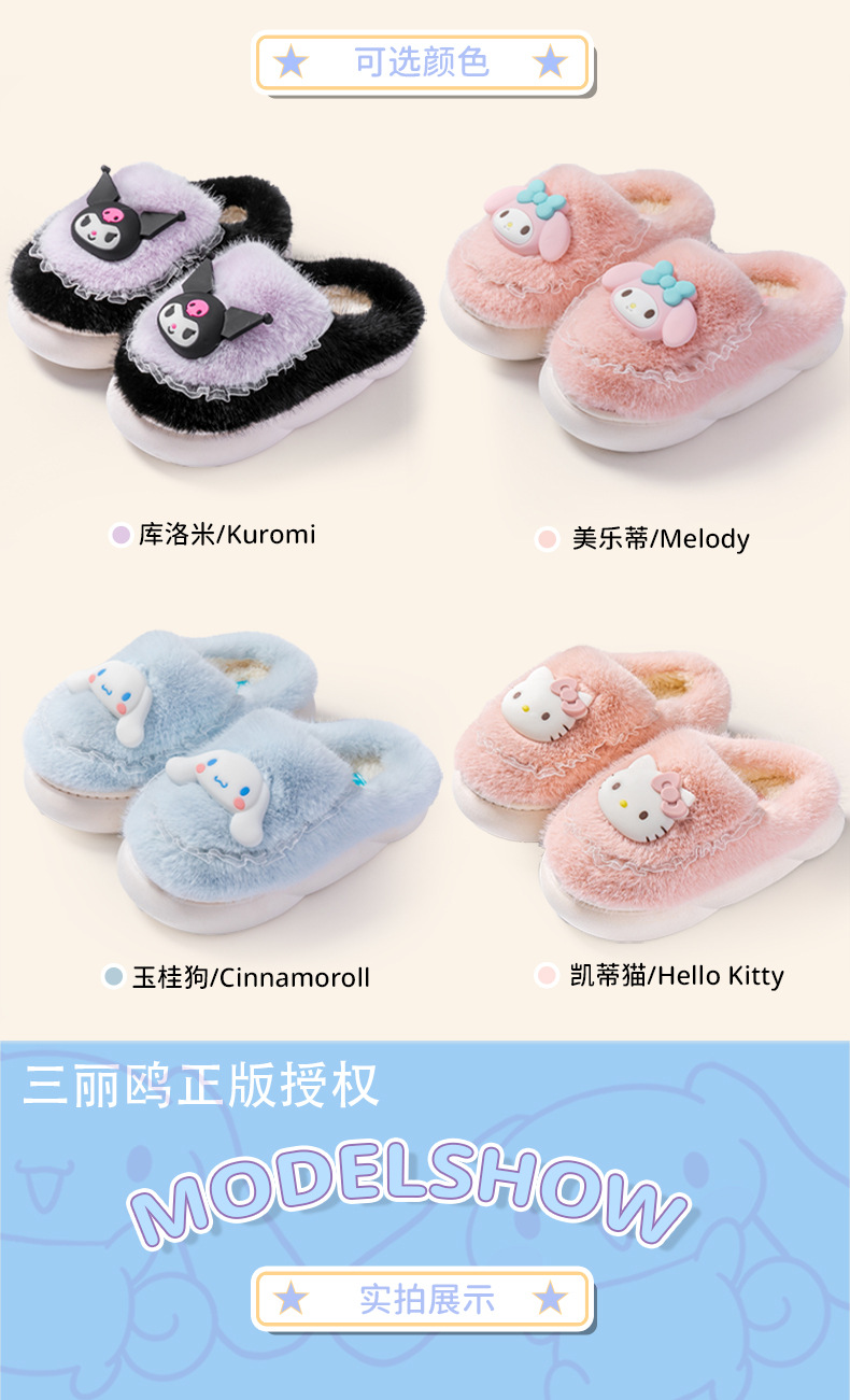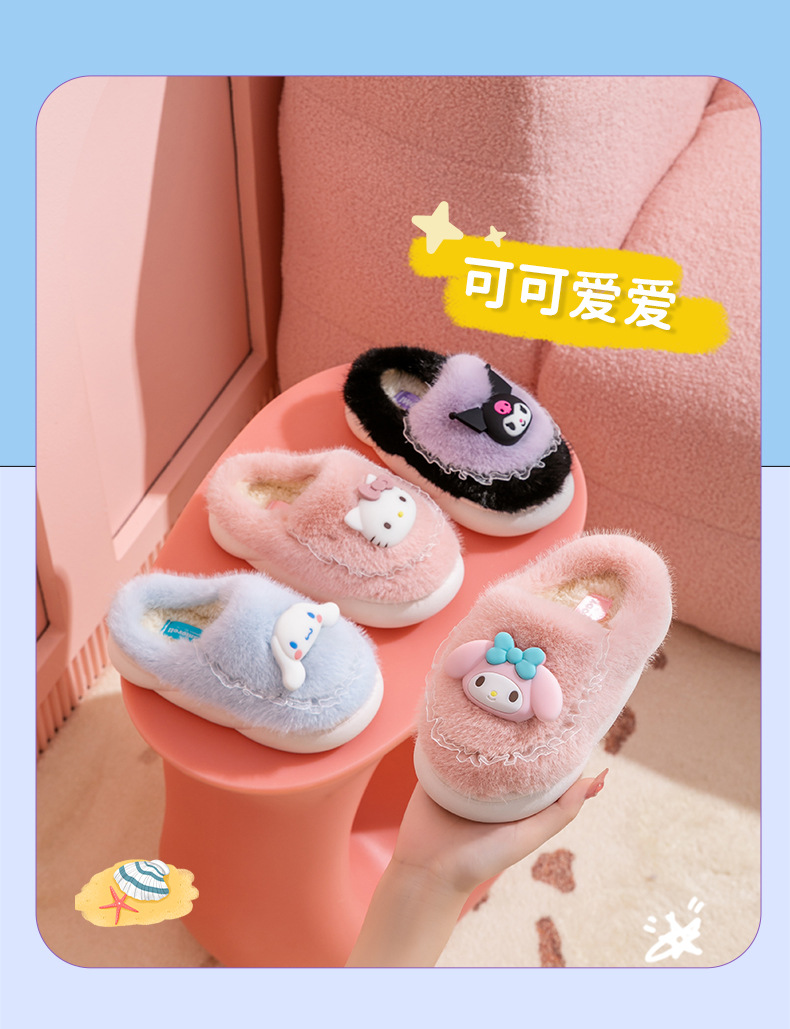 산리오 어린이 면화 슬리퍼 겨울 귀여운 기모 따뜻한 소녀의 집 쿨리 미 면화 슬리퍼 하프 백 힐