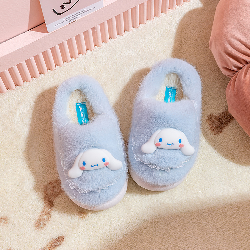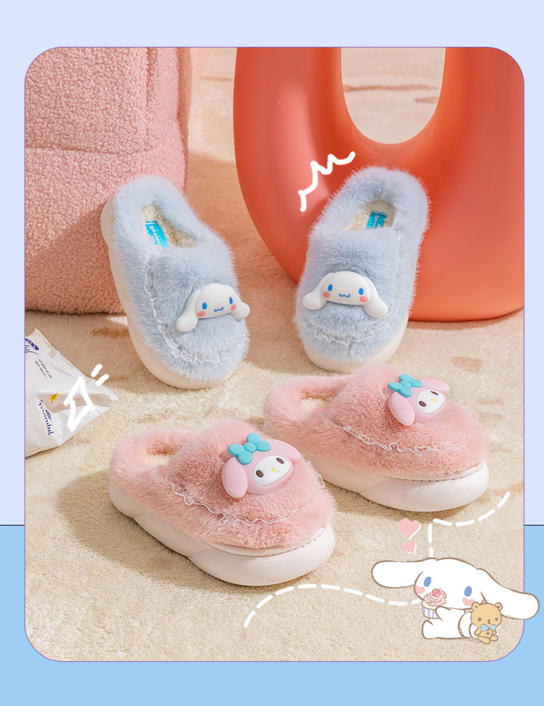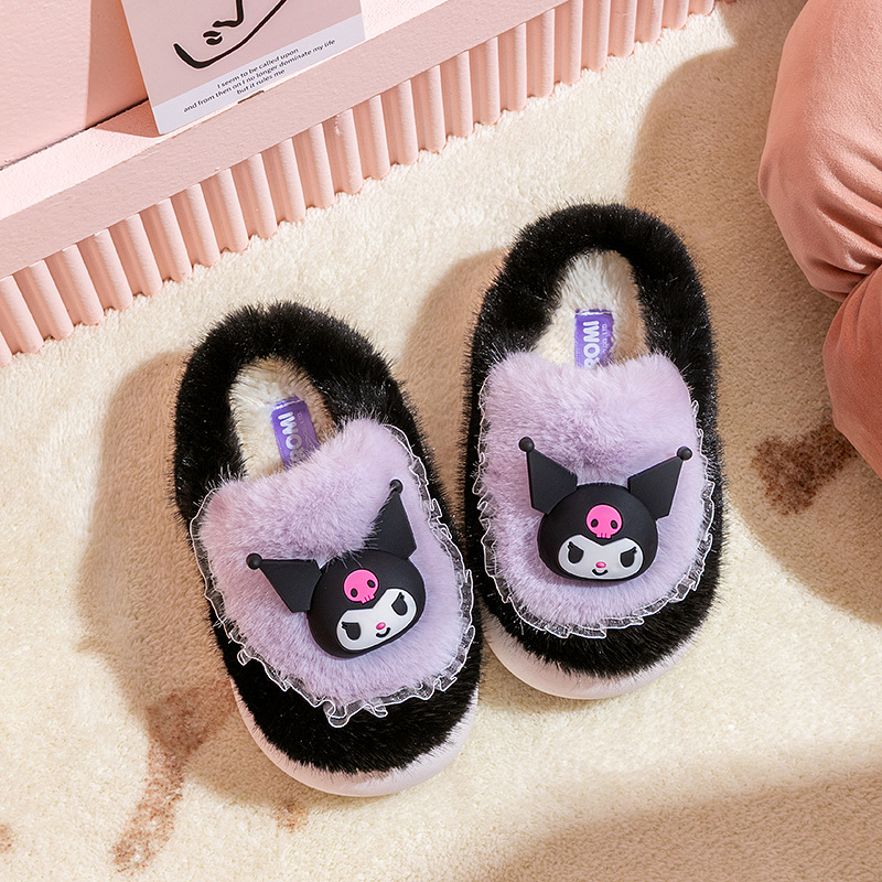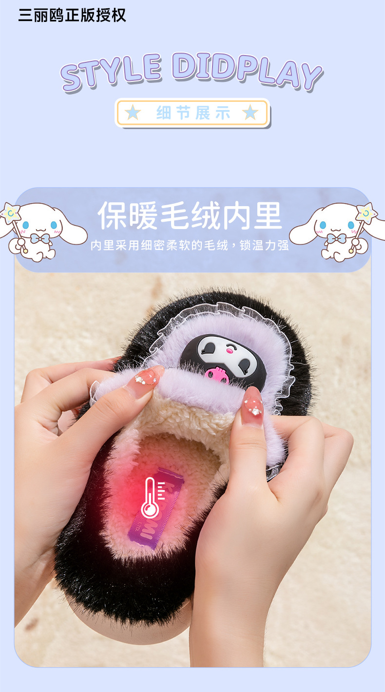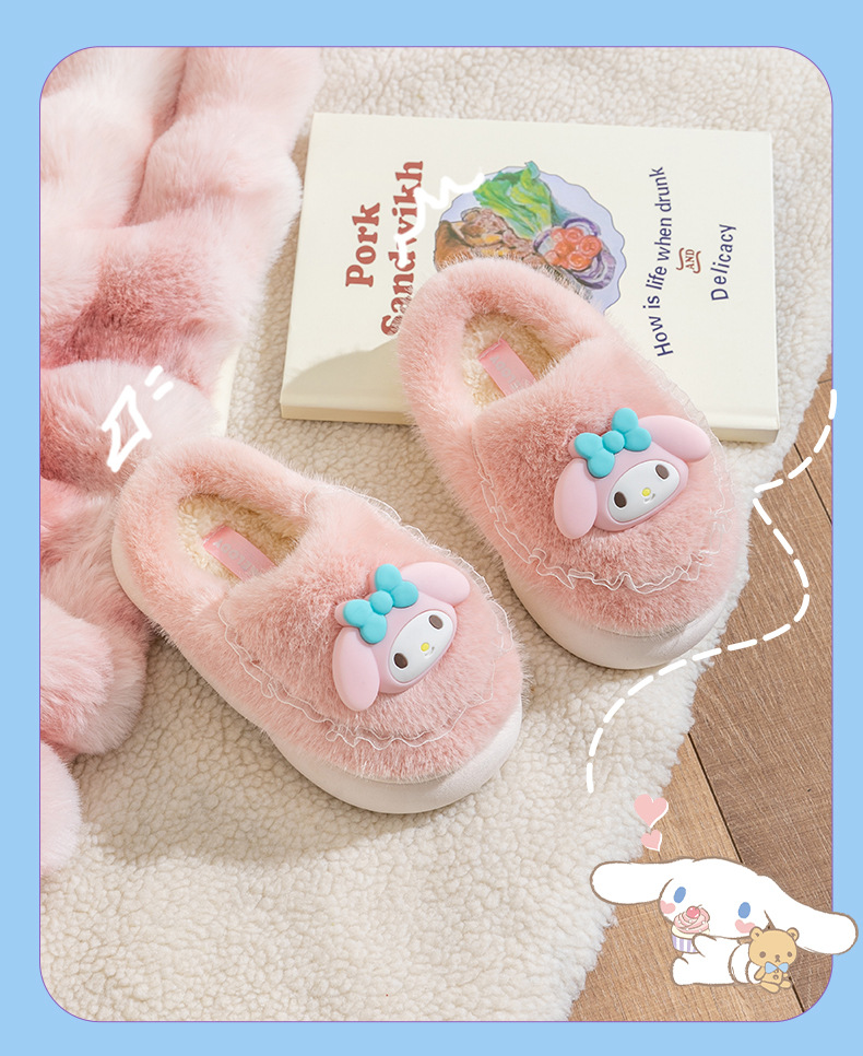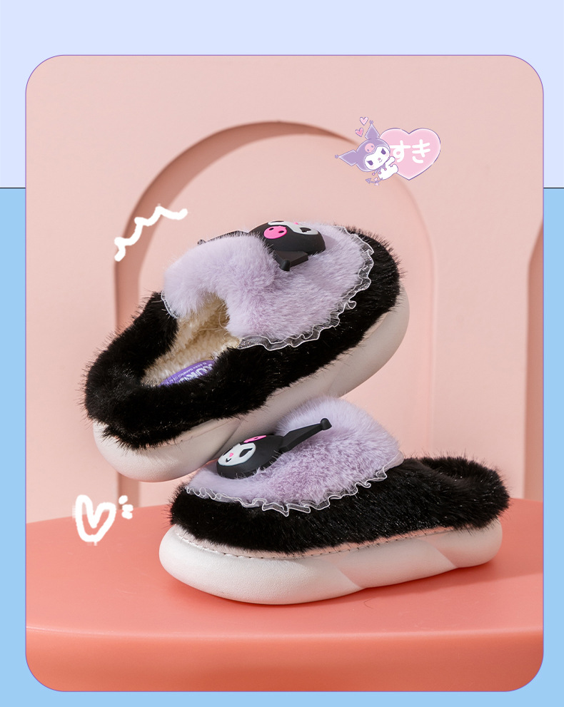 산리오 어린이 면화 슬리퍼 겨울 귀여운 기모 따뜻한 소녀의 집 쿨리 미 면화 슬리퍼 하프 백 힐