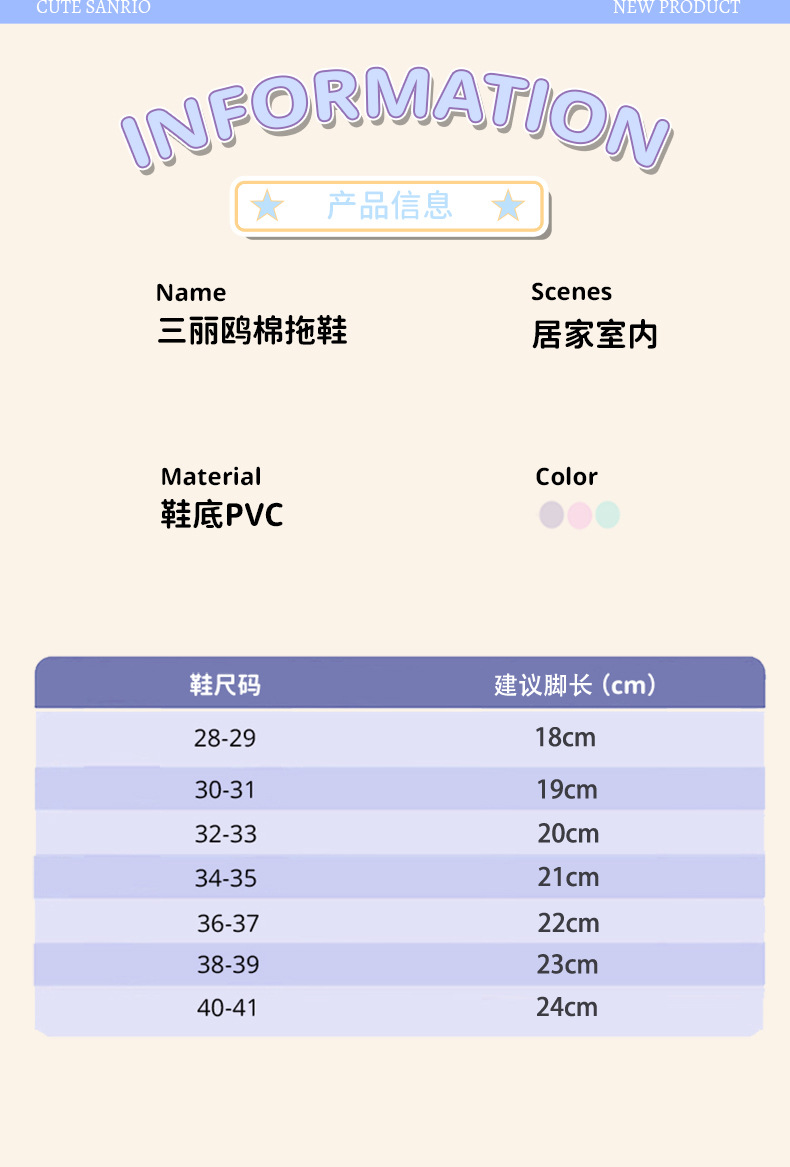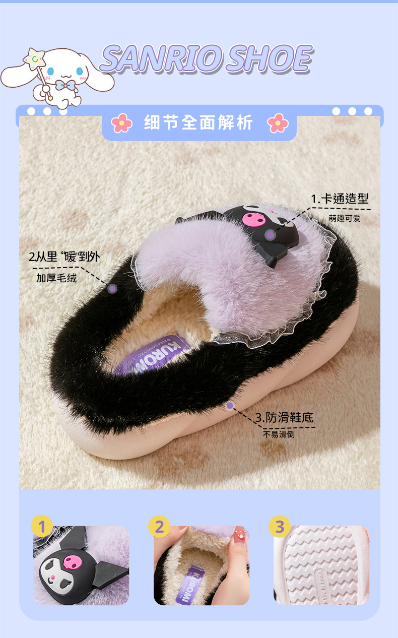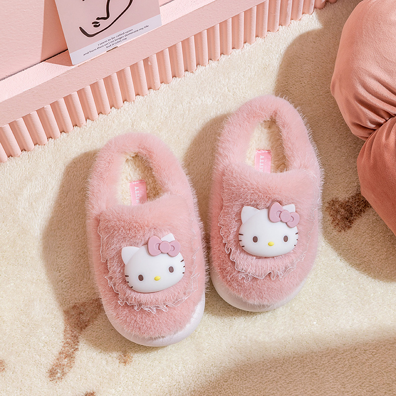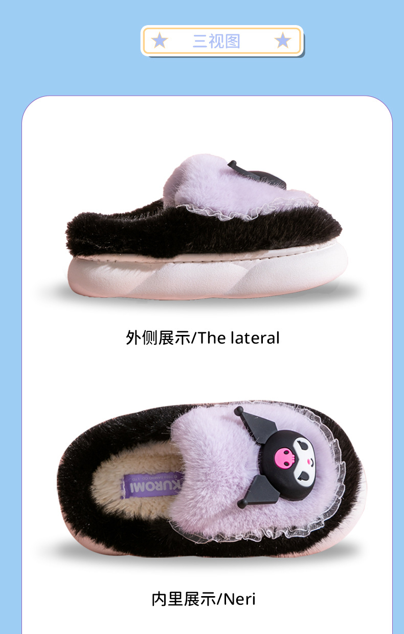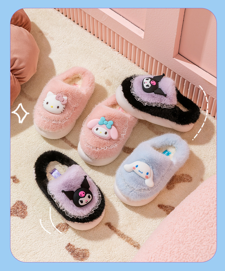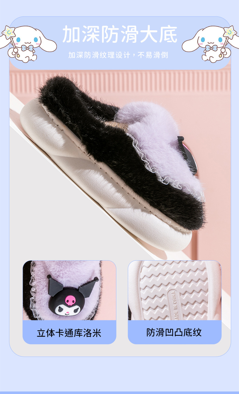 산리오 어린이 면화 슬리퍼 겨울 귀여운 기모 따뜻한 소녀의 집 쿨리 미 면화 슬리퍼 하프 백 힐
