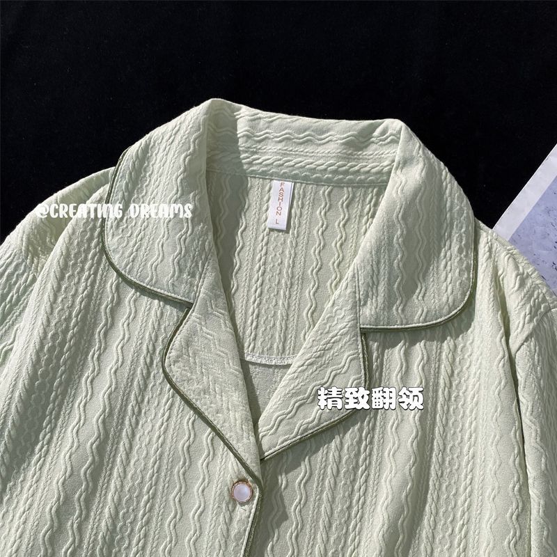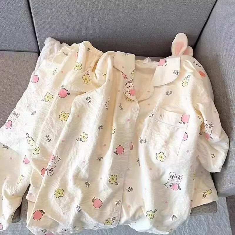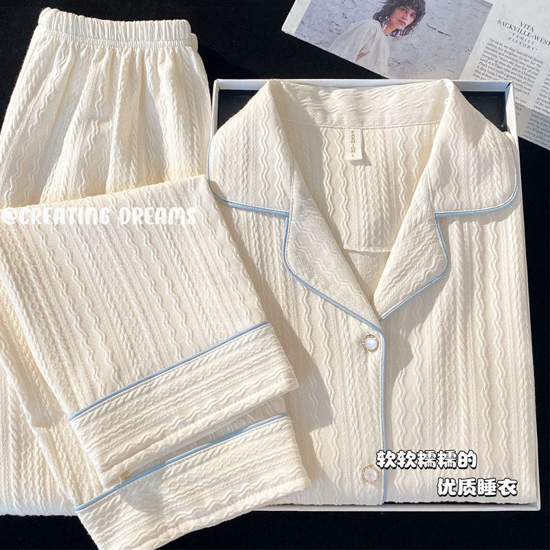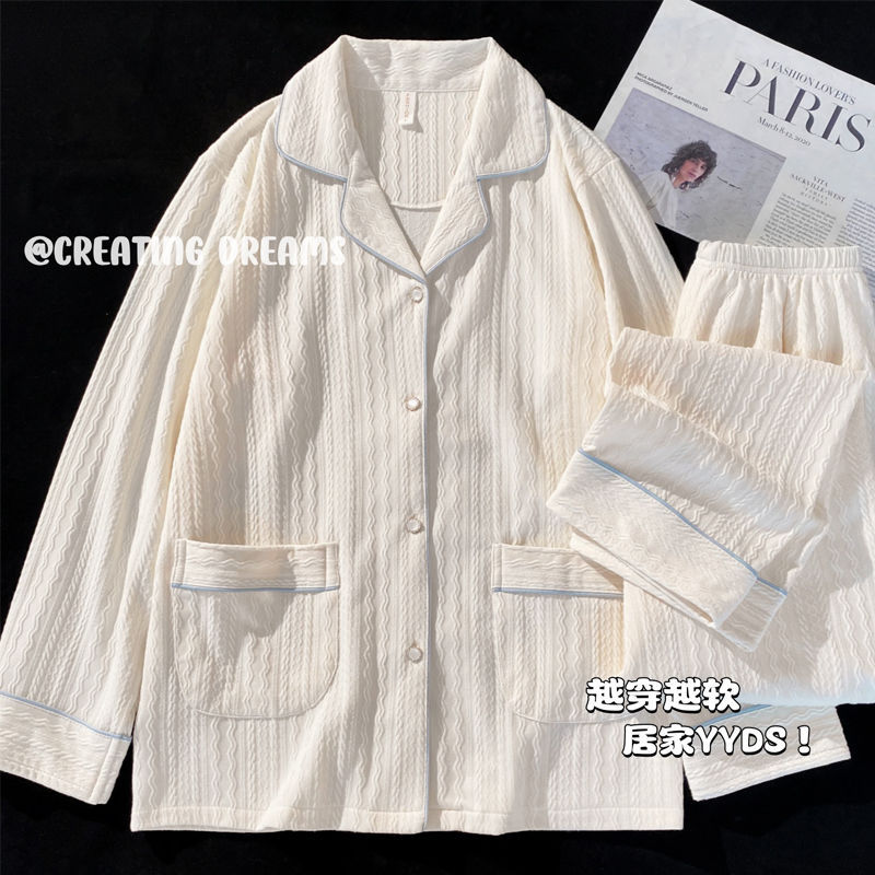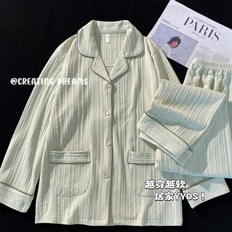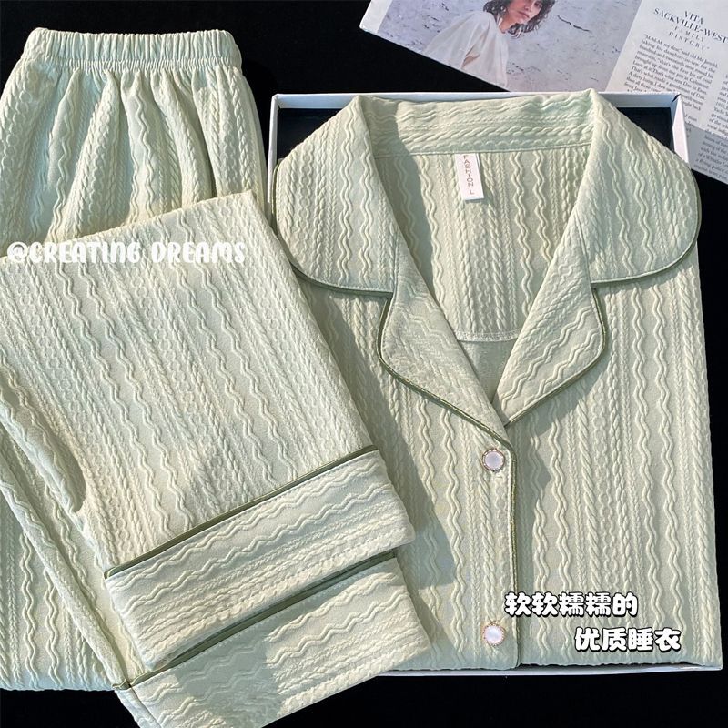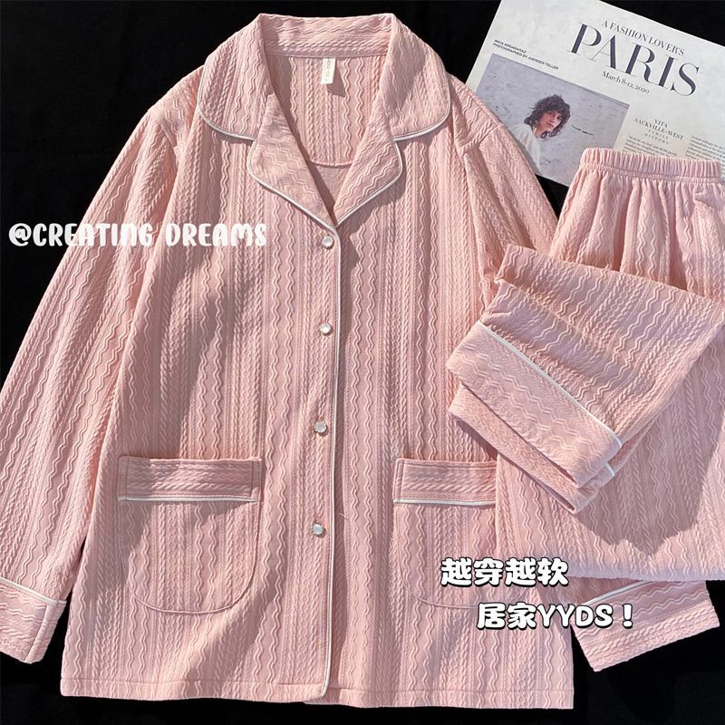 100% 순면 잠옷 여성용 면 봄 가을 단색 가디건 긴팔 2025 신상 귀여운 봄 홈웨어스토어 가기