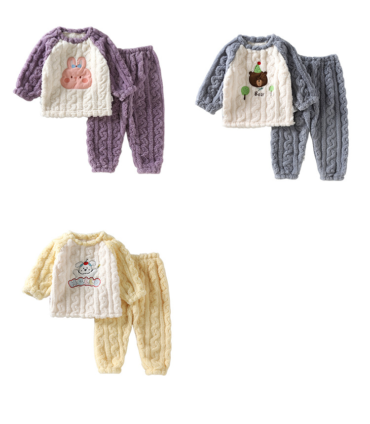 작은 돼지 데이비드 2025 가을 겨울 편안한 면 벨벳 자카드 홈웨어 남녀 아기용 풀오버 플리스 잠옷스토어 가기