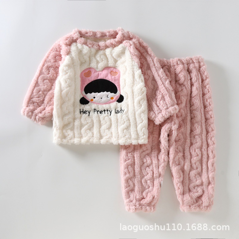 작은 돼지 데이비드 2025 가을 겨울 편안한 면 벨벳 자카드 홈웨어 남녀 아기용 풀오버 플리스 잠옷