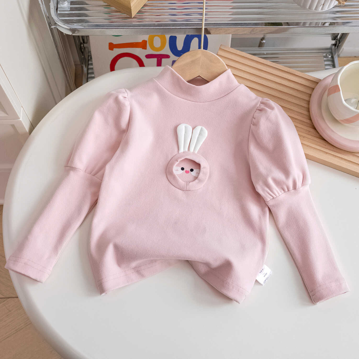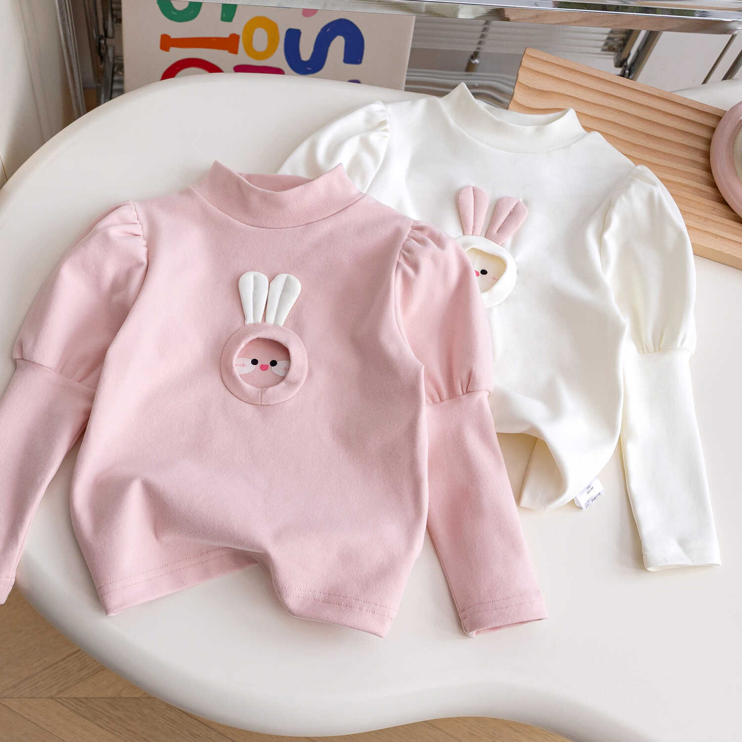 여자 달콤한 티셔츠 가을 2022 새로운 아기 소녀 다목적 서양식 입체 토끼 하프 거북이 칼라 바닥 셔츠