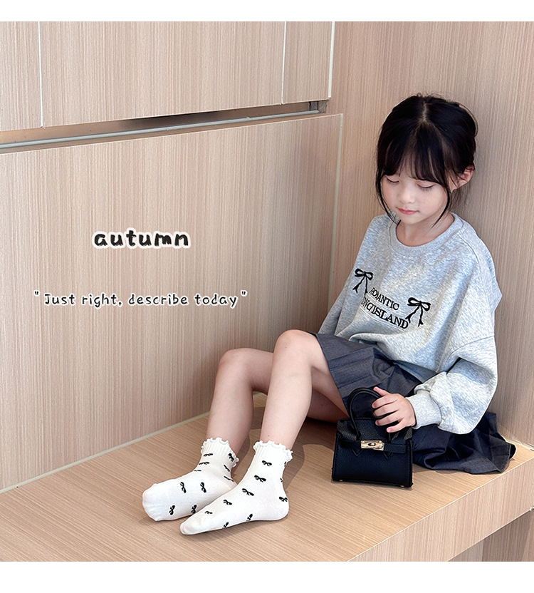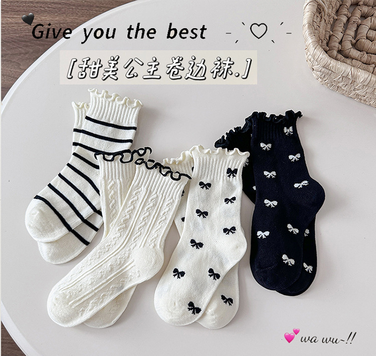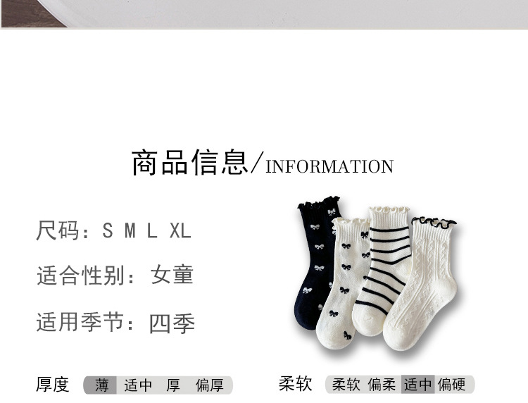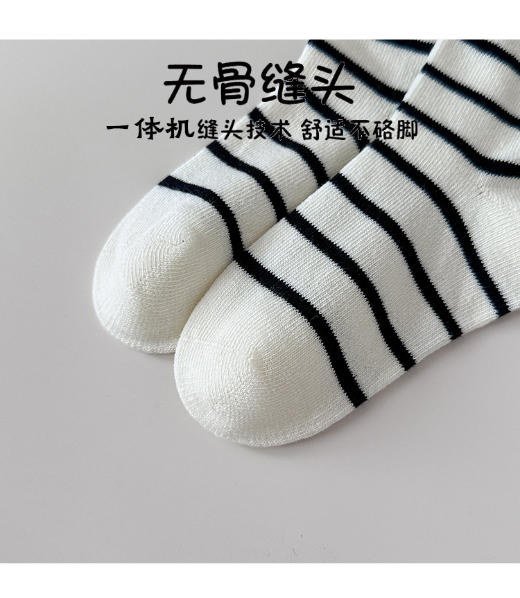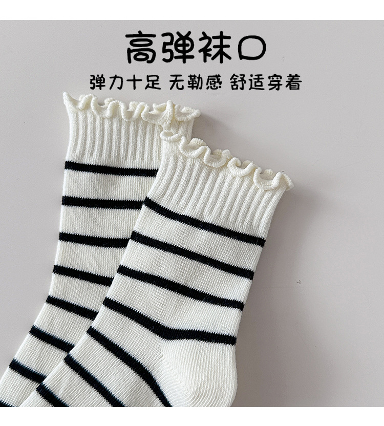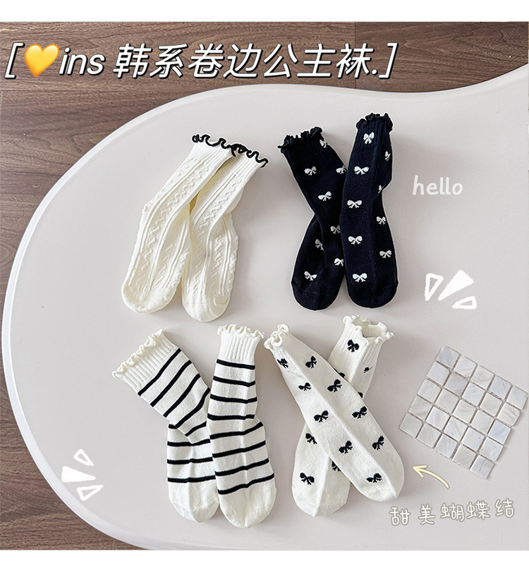 4 쌍의 어린이 양말 도매 가을 및 겨울 어린이 면화 양말 한국 뼈없는 흑백 줄무늬 나비 헴 소녀 양말스토어 가기