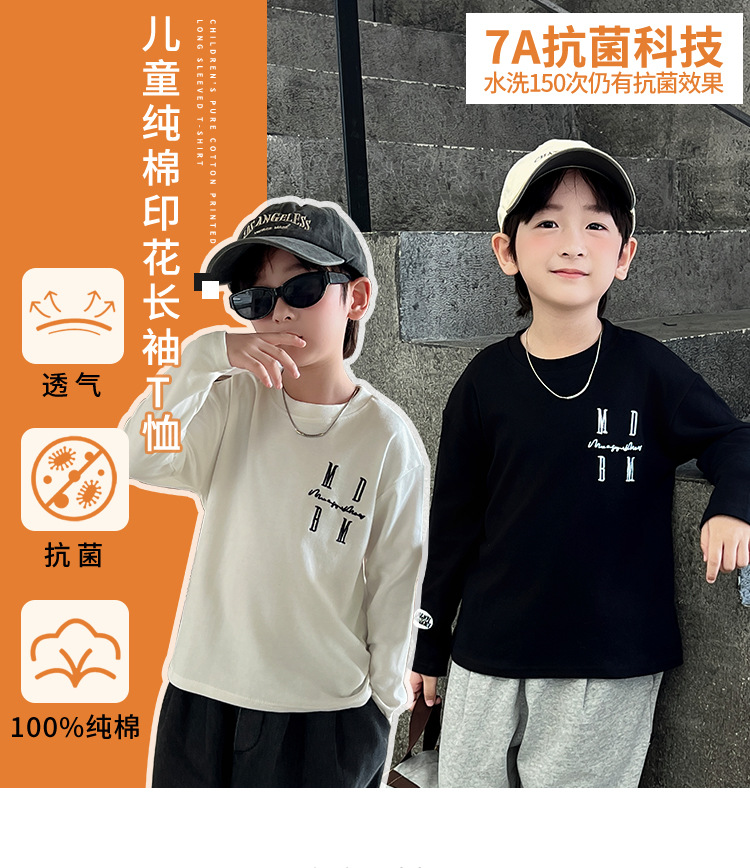 [7A 항균] AINI 어린이 순면 긴팔 티셔츠 수놓은 큰 어린이 중 · 소형 아동복 봄 · 가을 느슨한 자켓 타이드