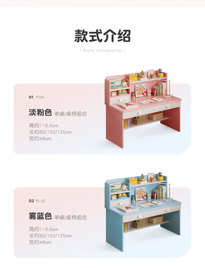 어린이 나무 책상 책장 통합 테이블 연구 테이블 초등학교 학생 가정 침실 쓰기 테이블과 의자 세트 소녀스토어 가기