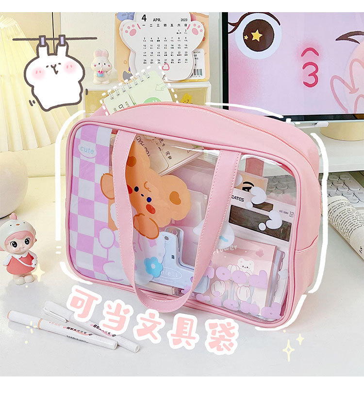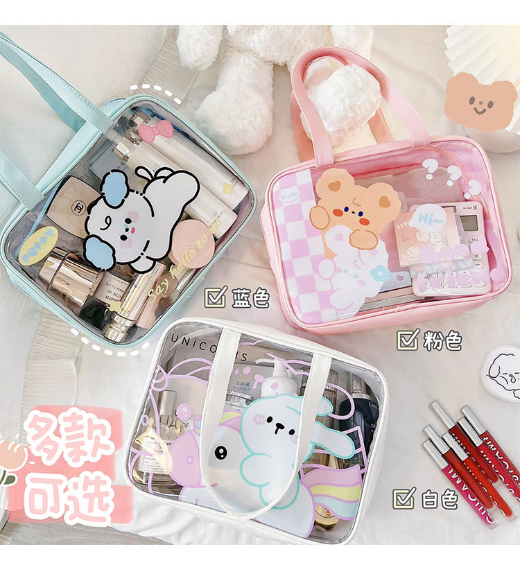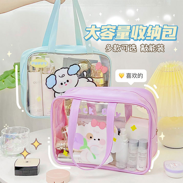 Ins 스타일 투명 화장품 가방 귀여운 휴대용 건조하고 젖은 별도의 화장실 가방 여성 만화 대용량 여행 보관 가방스토어 가기