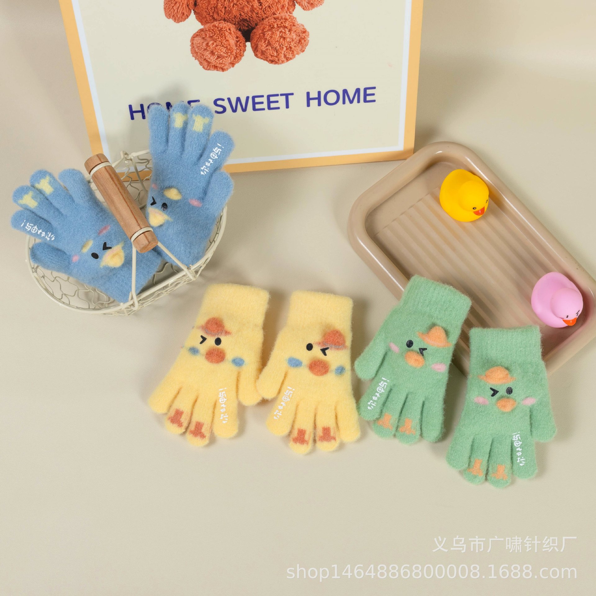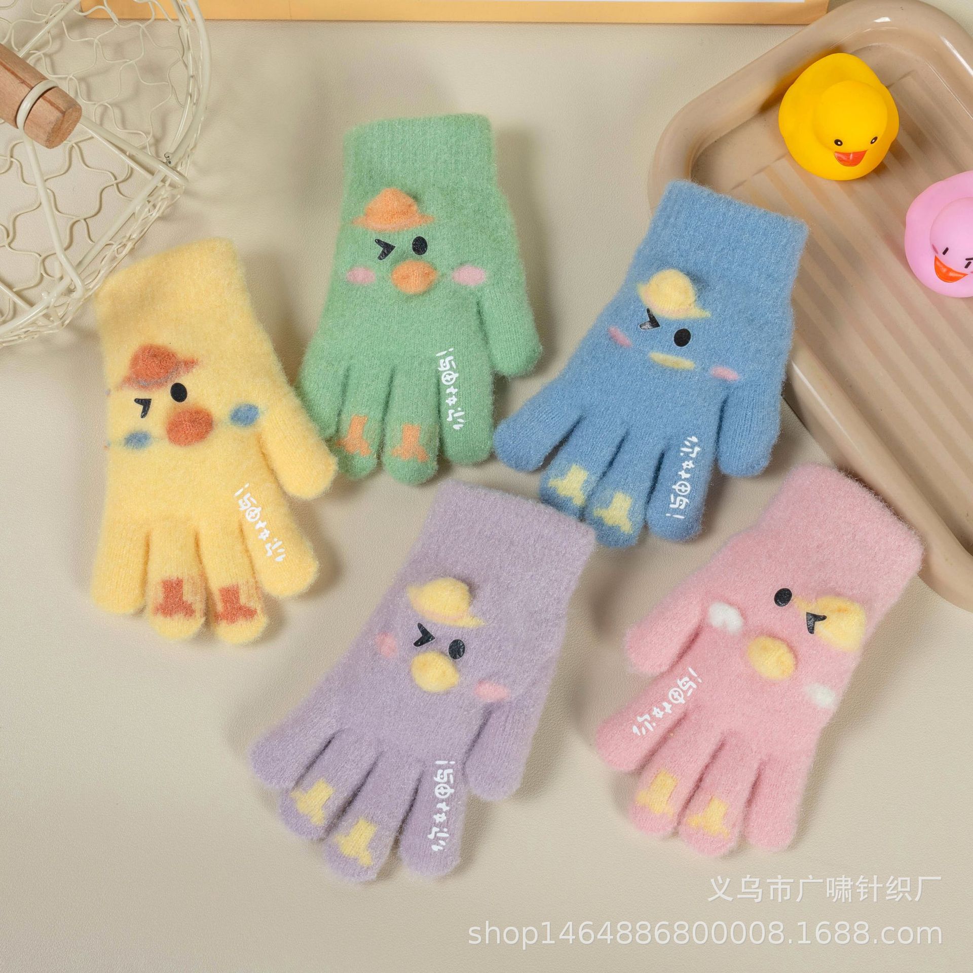 겨울 어린이 장갑 귀여운 오리 야외 따뜻한 니트 차가운 만화 소년 소녀 재고 도매스토어 가기