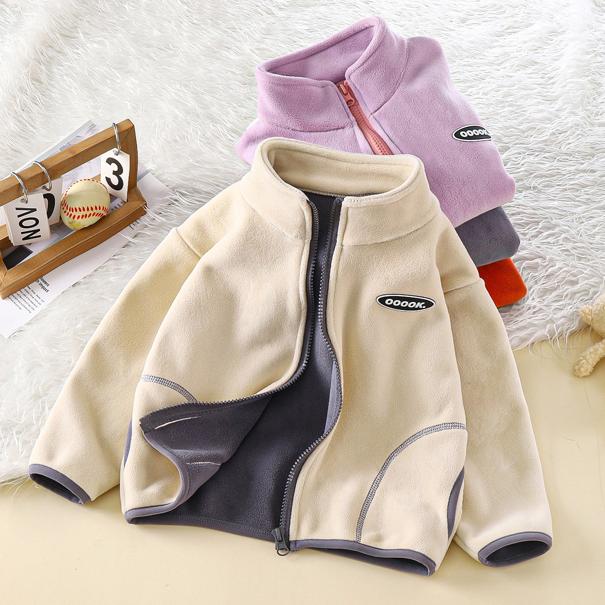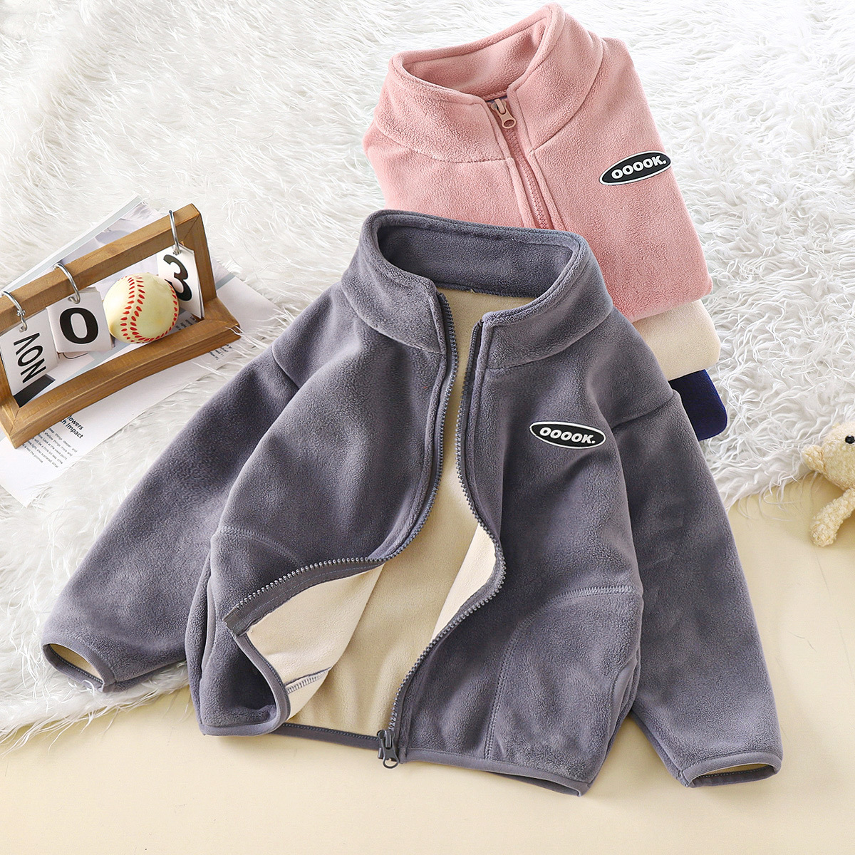가을과 겨울 어린이 캐주얼 양면 양면 재킷 큰 아이들을위한 아기 두꺼운 따뜻한 올림픽 곡물 양털 싱글 재킷