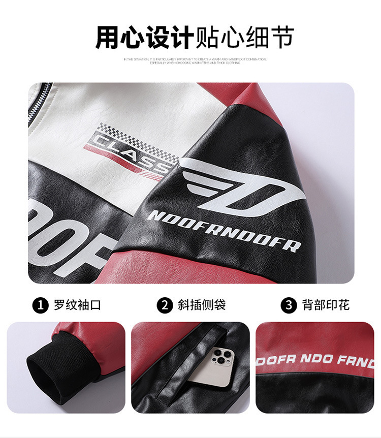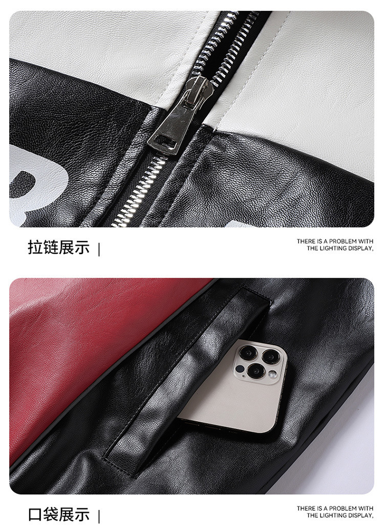 新款皮衣男机车皮夹克日系宽松时尚飞行皮夹克大码男装绣花皮衣男