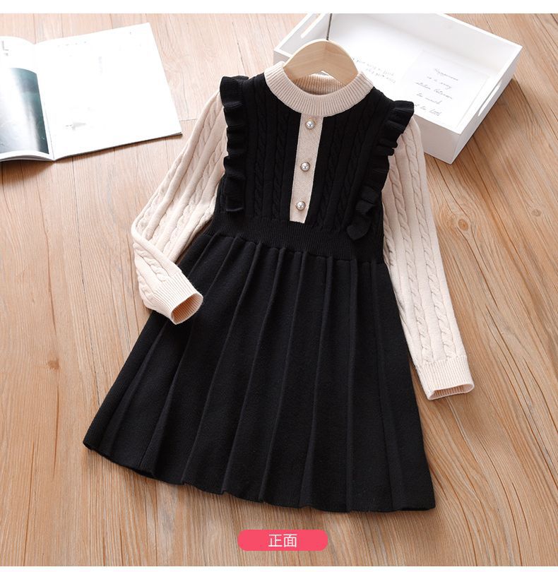 가을과 겨울에 원피스 걸스 유행 큰 어린이 새로운 어린이 니트 스웨터 스커트 가을 세련된 공주 스커트스토어 가기