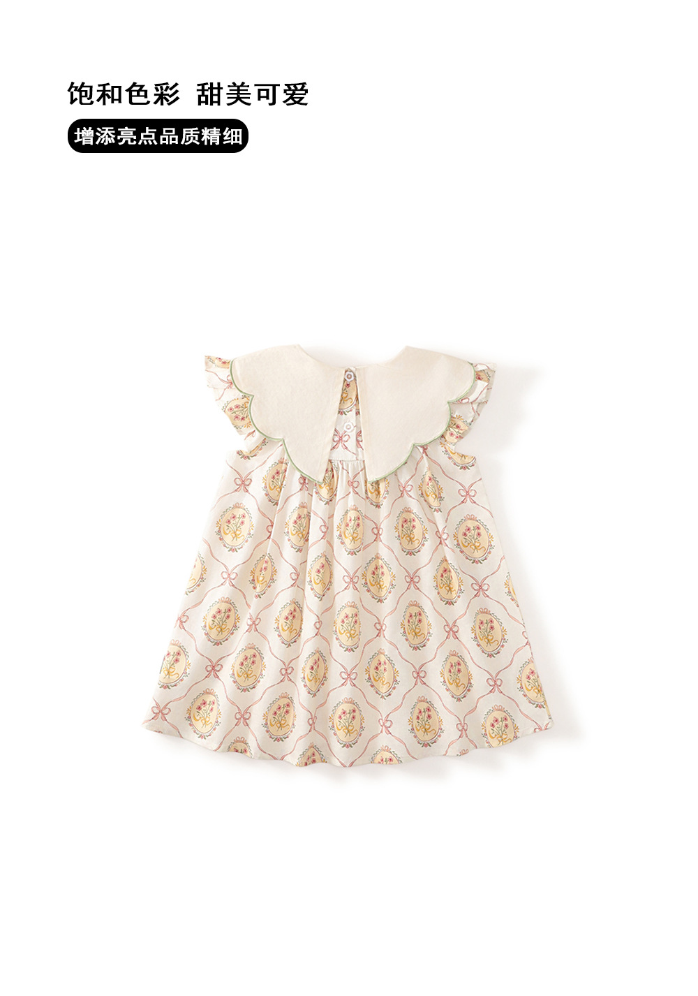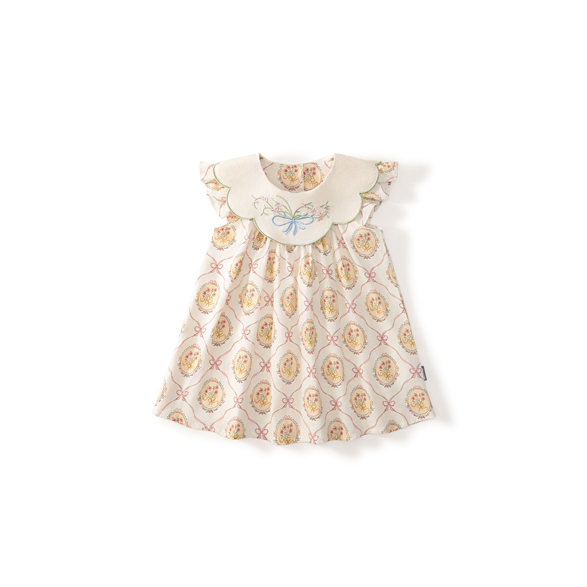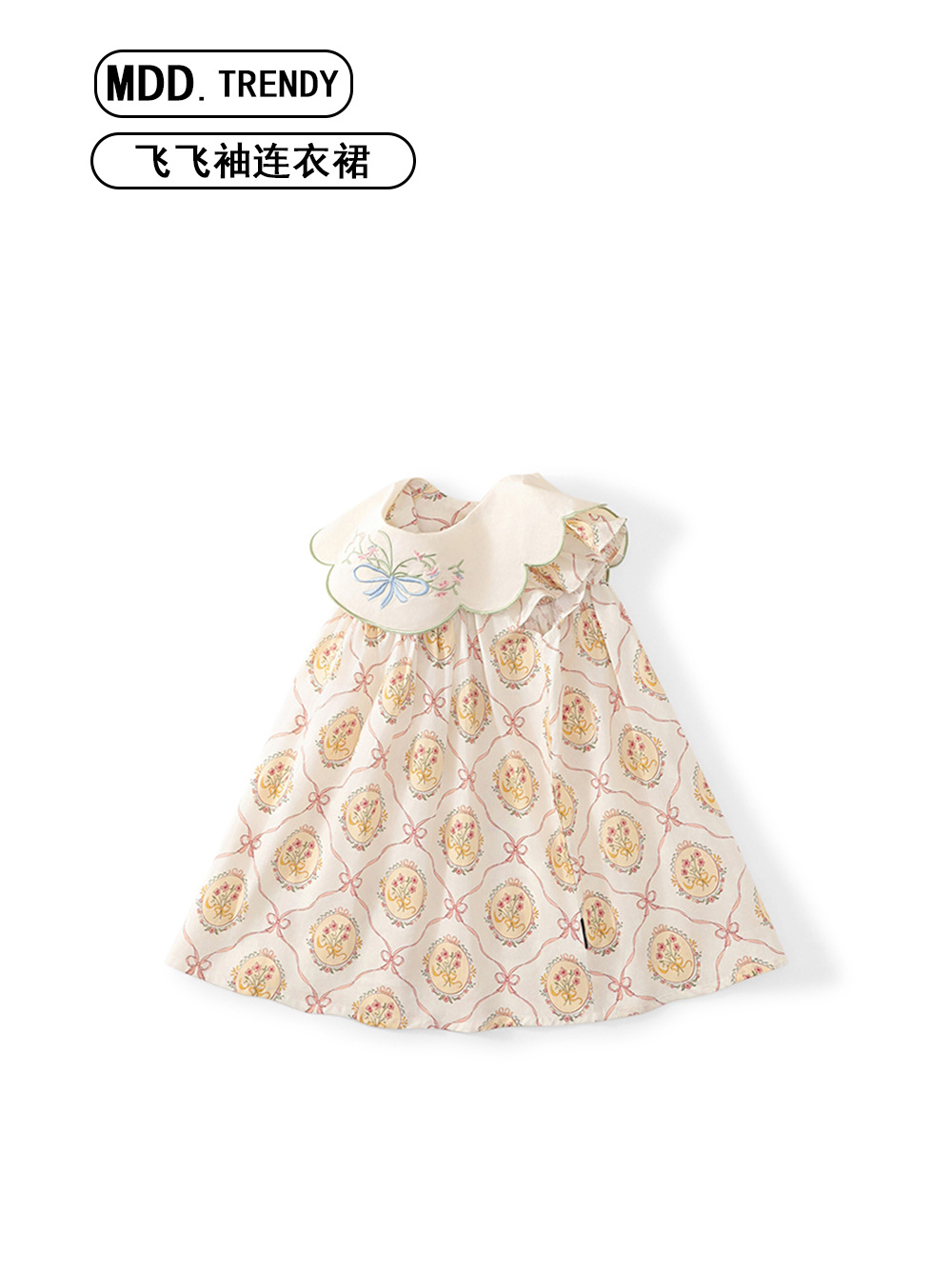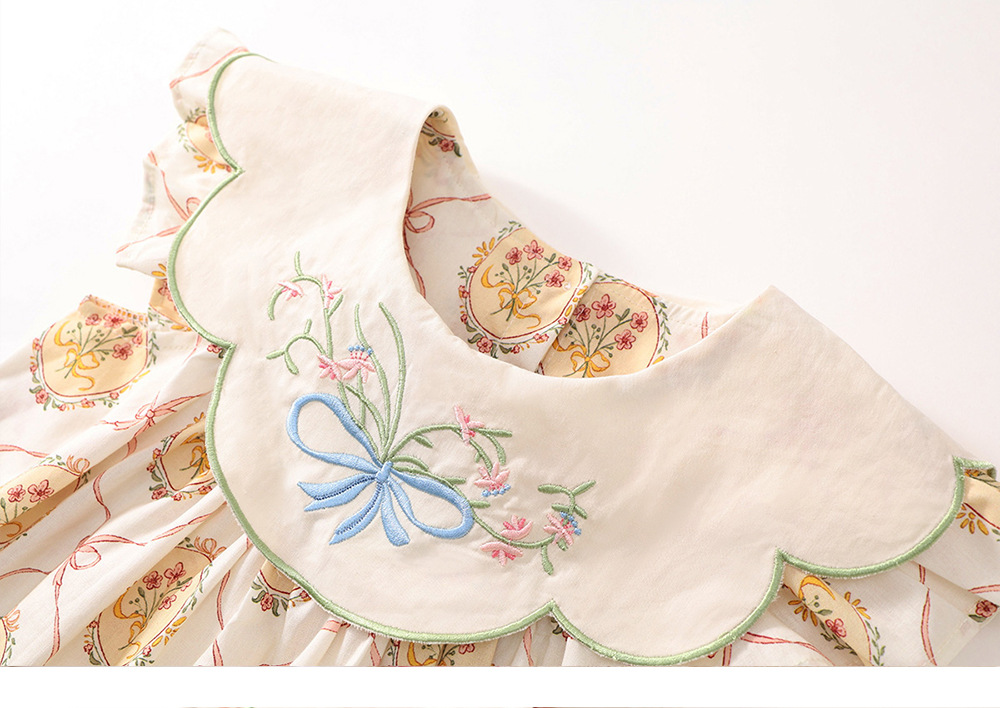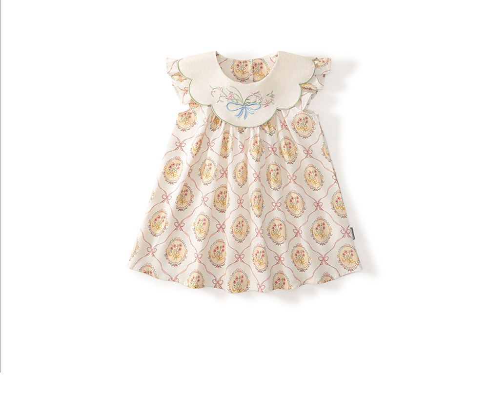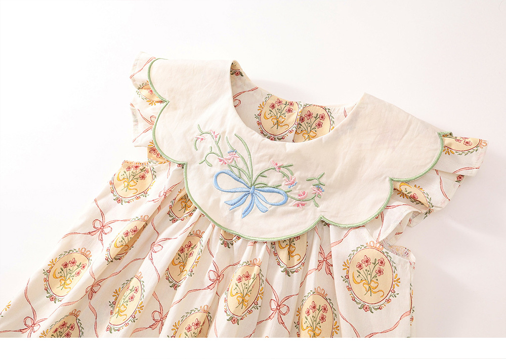 MDD 어린이 인형 목걸이 나비 꽃 수 놓은 소녀 원피스 2024 여름 새로운 비행 소매 달콤한 공주 원피스