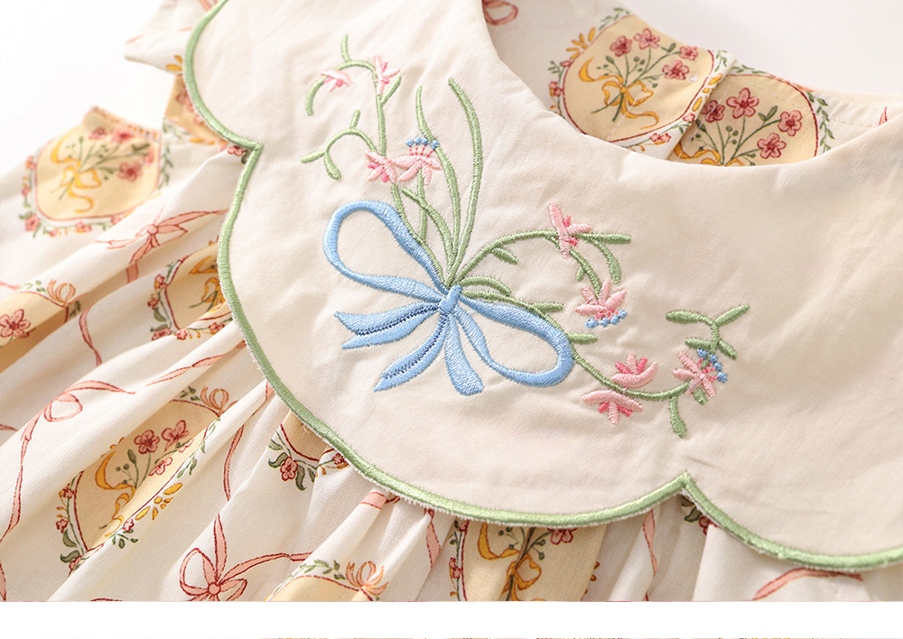 MDD 어린이 인형 목걸이 나비 꽃 수 놓은 소녀 원피스 2024 여름 새로운 비행 소매 달콤한 공주 원피스스토어 가기