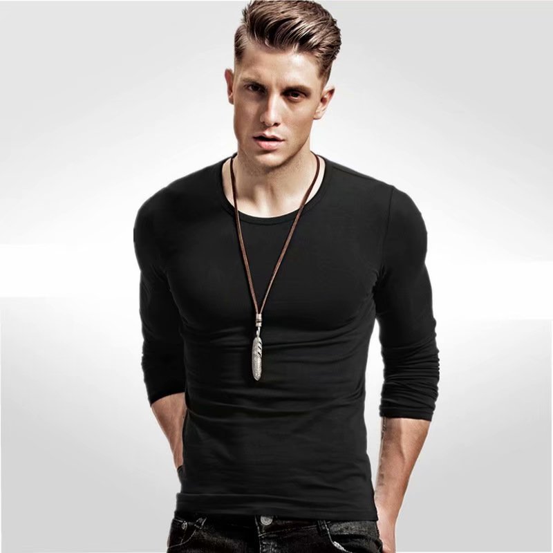 20 새로운 가을 긴 소매 티셔츠 남성용 라운드 넥 솔리드 컬러 얇은 티셔츠 가을 옷 남성베이스 셔츠 플러스 사이즈 최고 남성복