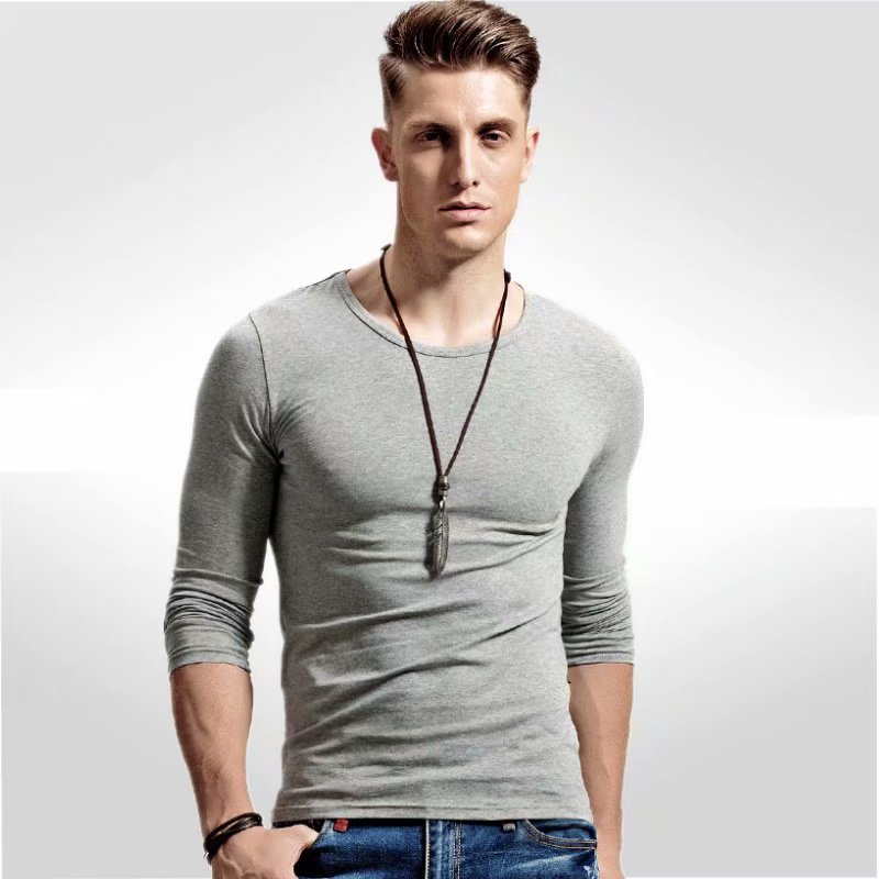 20 새로운 가을 긴 소매 티셔츠 남성용 라운드 넥 솔리드 컬러 얇은 티셔츠 가을 옷 남성베이스 셔츠 플러스 사이즈 최고 남성복스토어 가기