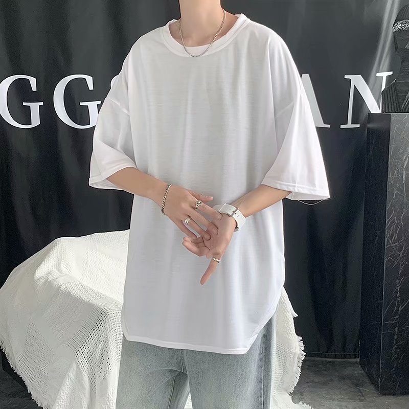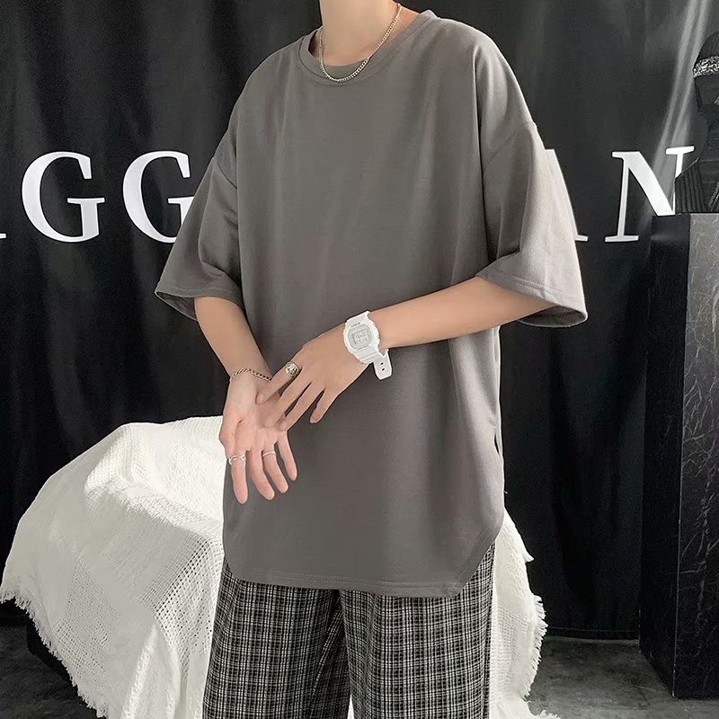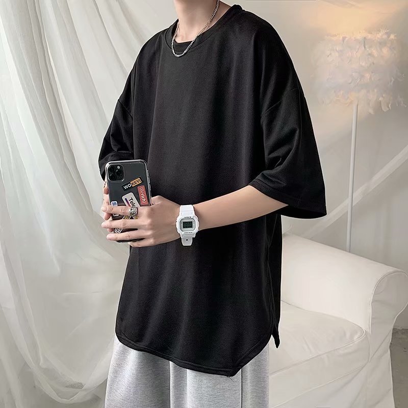 여름 반팔 티셔츠 남성용 심플한 내부 V-스플릿 라운드 넥 루즈 하프 슬리브 탑 한국 패셔너블 힙합 티셔츠 트렌디스토어 가기