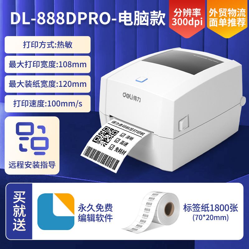 Deli DL-888DPRO 국경 간 라벨 프린터 열 자체 접착 E-우편물 물류 주문 기계스토어 가기