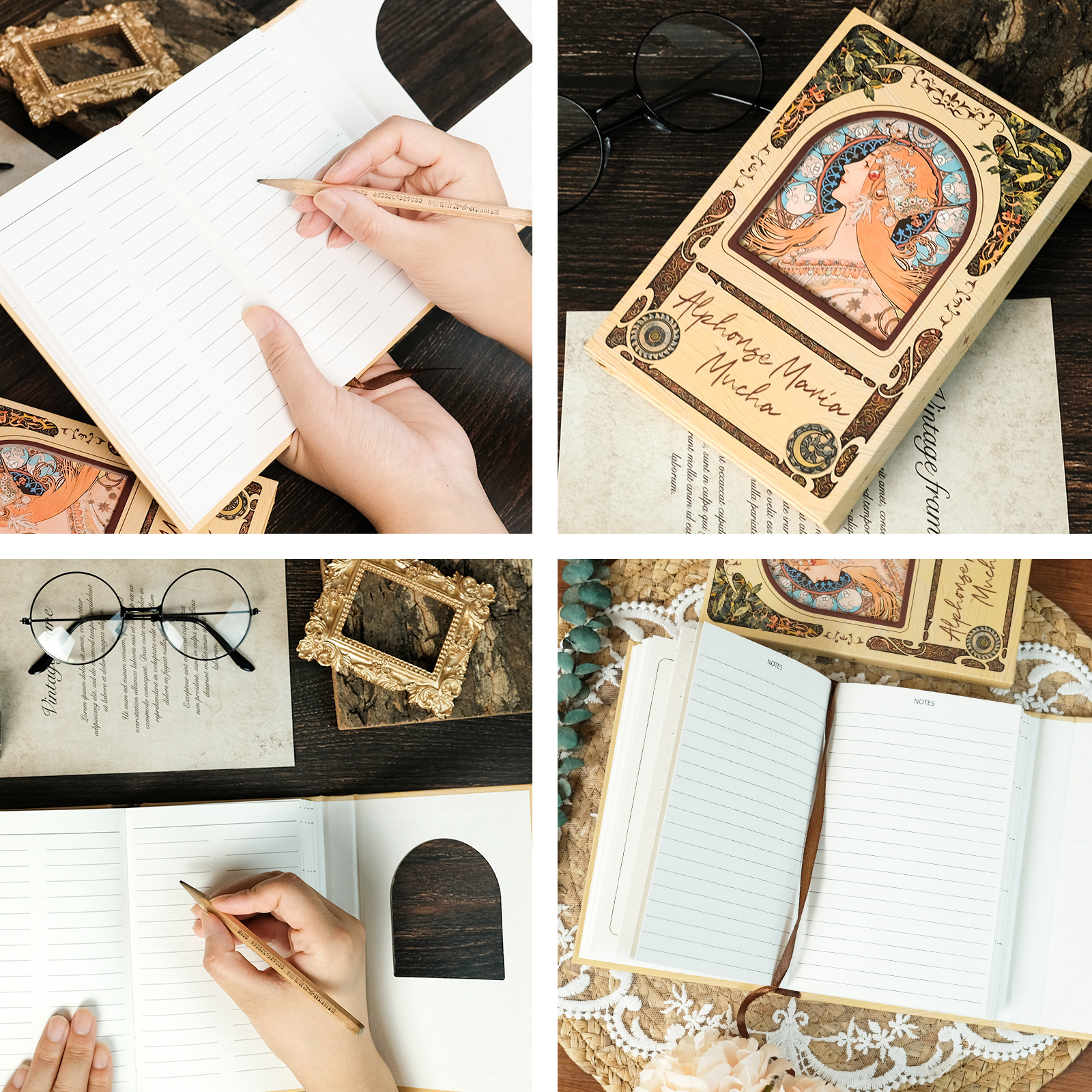 레트로 시리즈 Mu Xia 그림 하드 쉘 마그네틱 버클 노트북 휴대용 트리플 접이식 메모장 학교 개업에 필수적입니다.