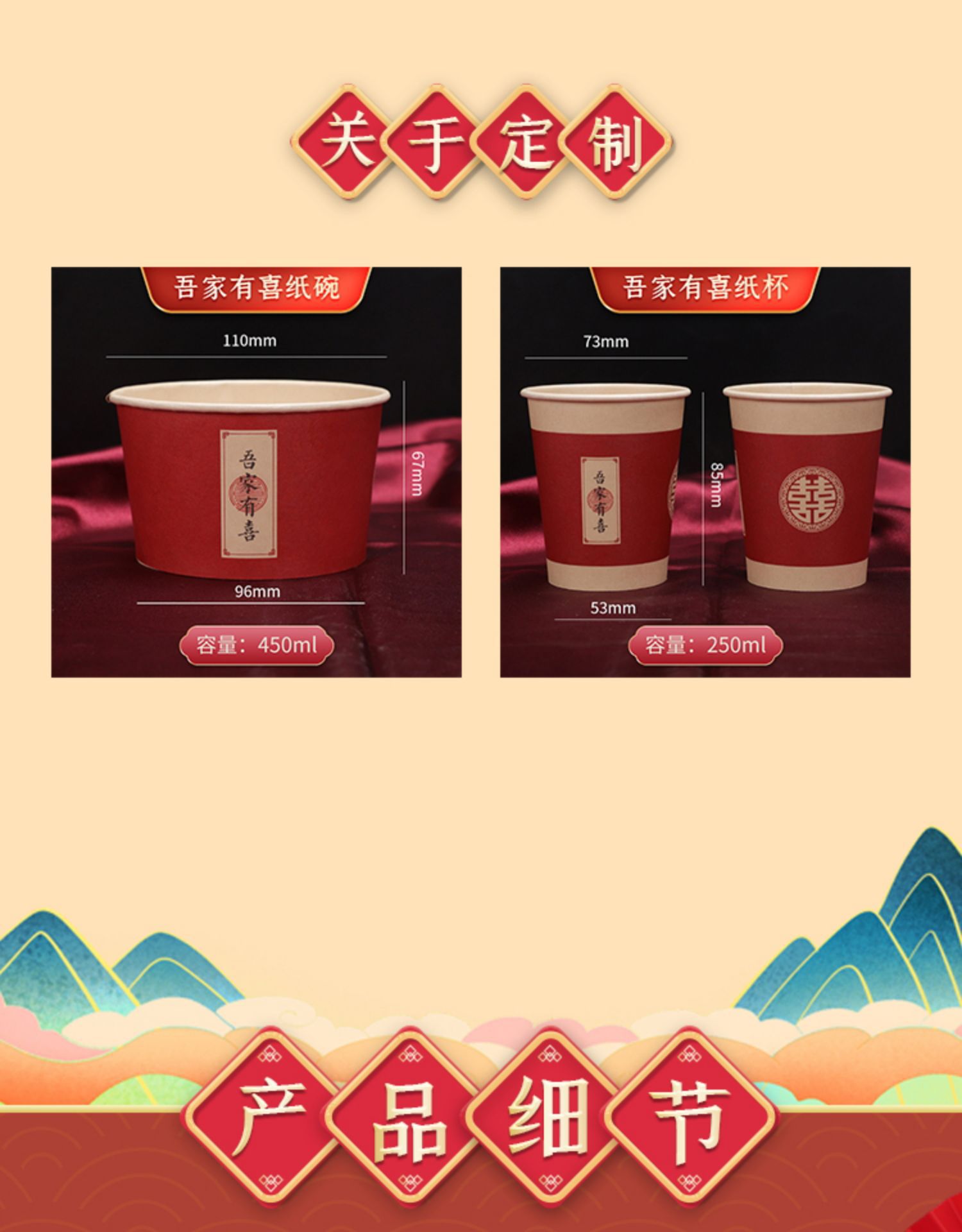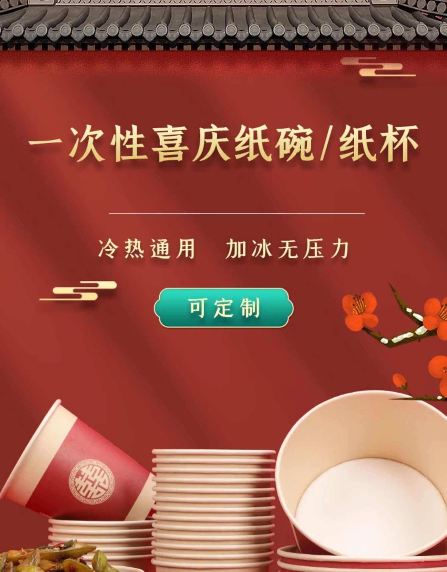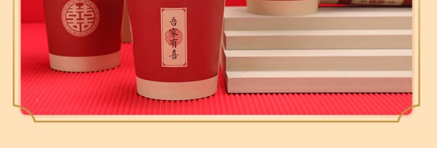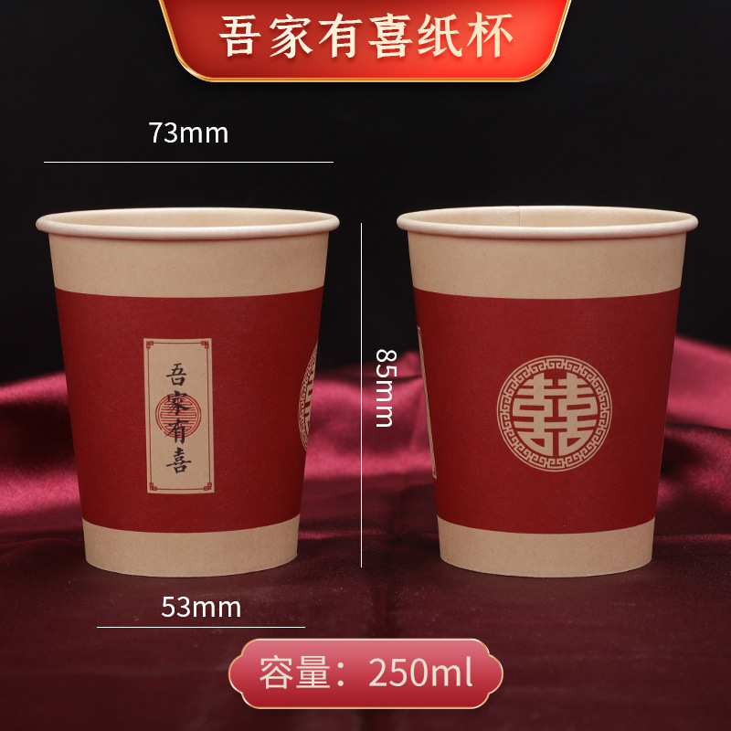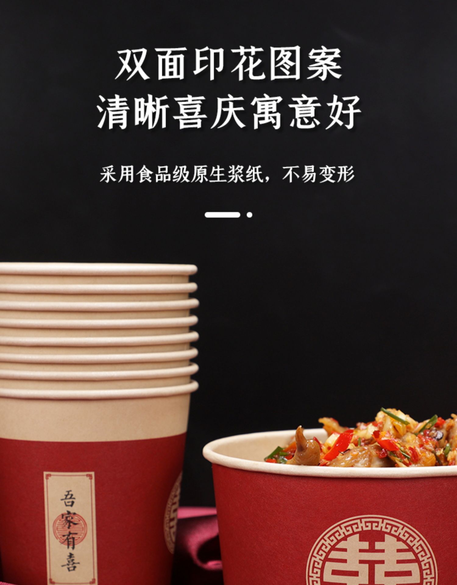 일회용 그릇 웨딩 종이 그릇과 젓가락 세트 식품 등급 식기 행복한 일 빨간색 웨딩 그릇 결혼식 연회 결혼식 두꺼운스토어 가기