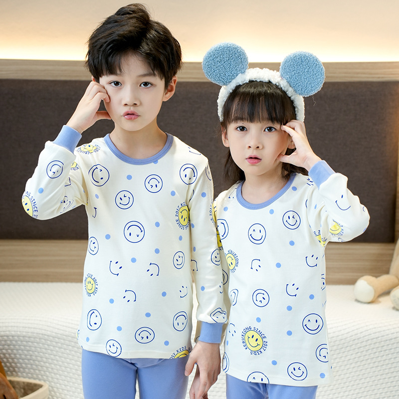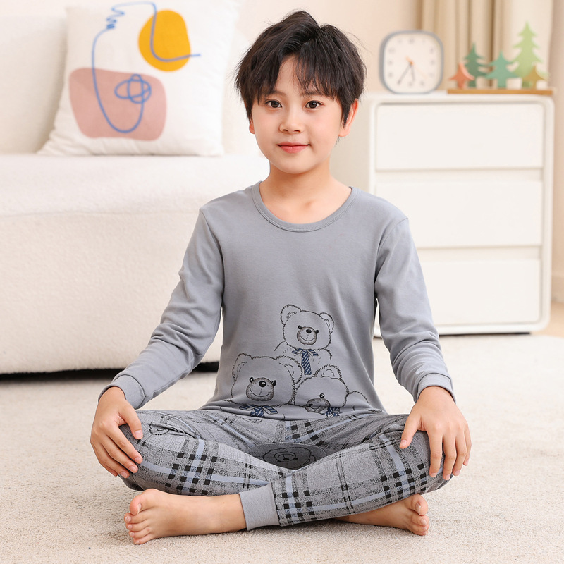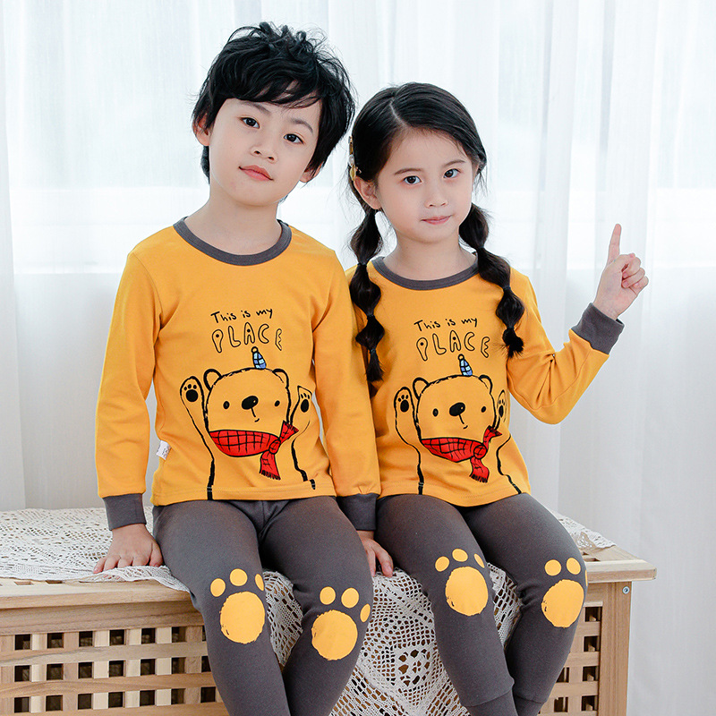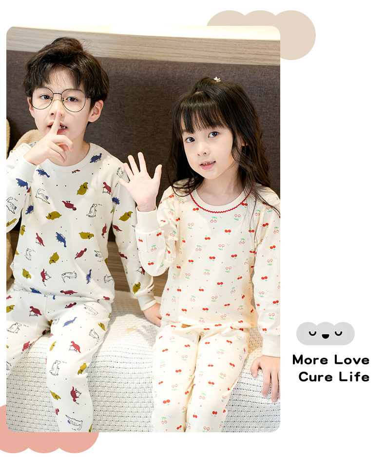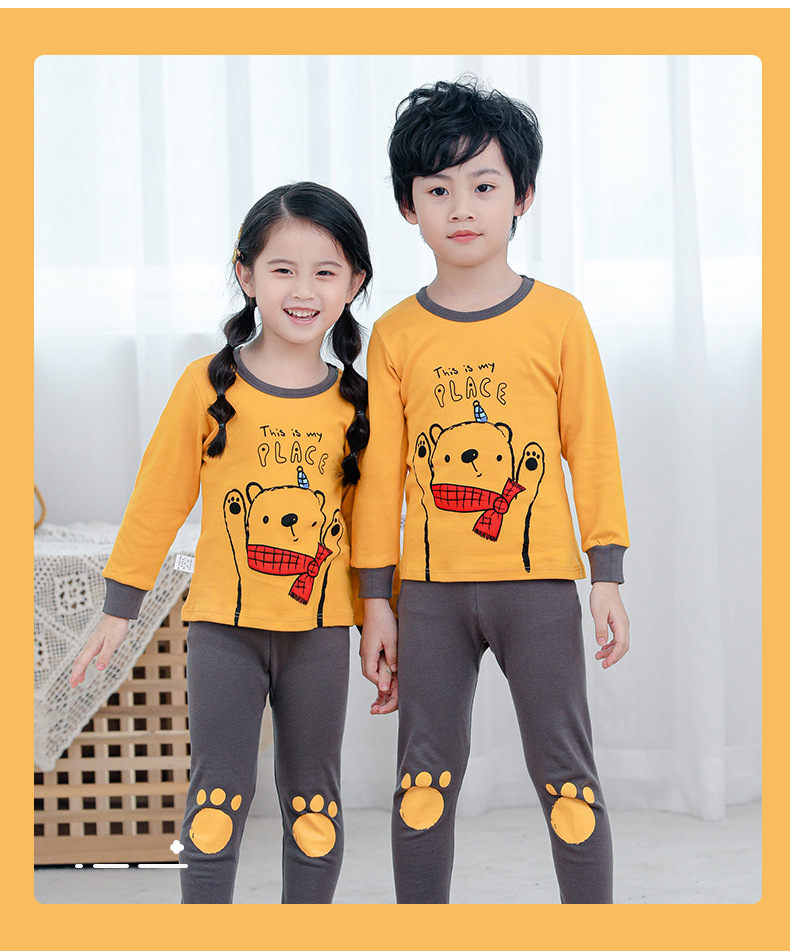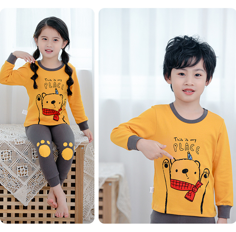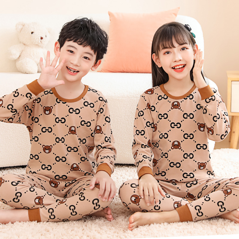 2024 년 가을과 겨울을위한 어린이 만화 코튼 스웨터 소년 소녀베이스 속옷 세트 홈 의류 파자마 투피스 세트스토어 가기