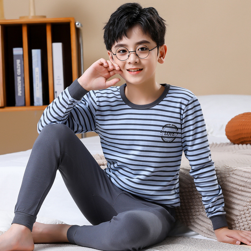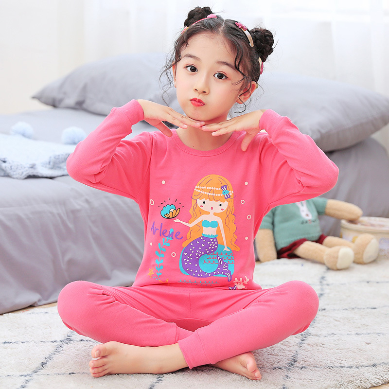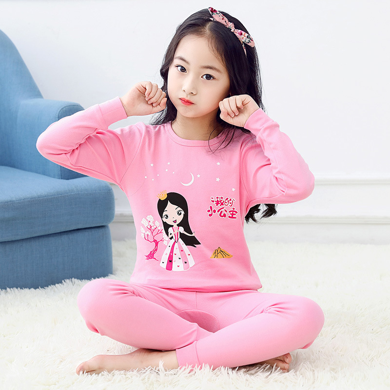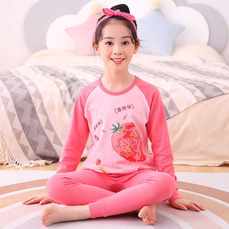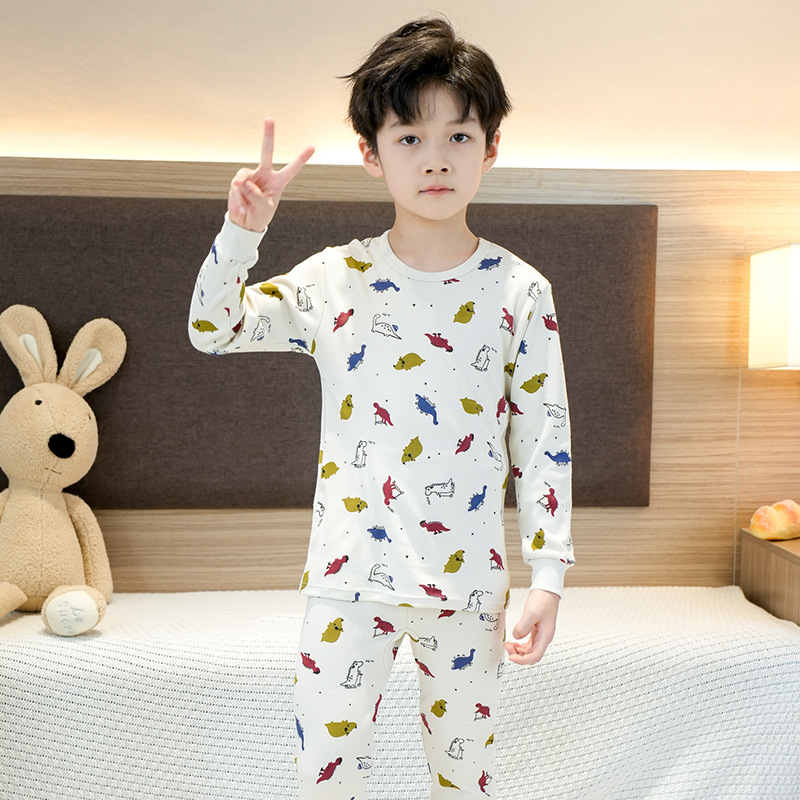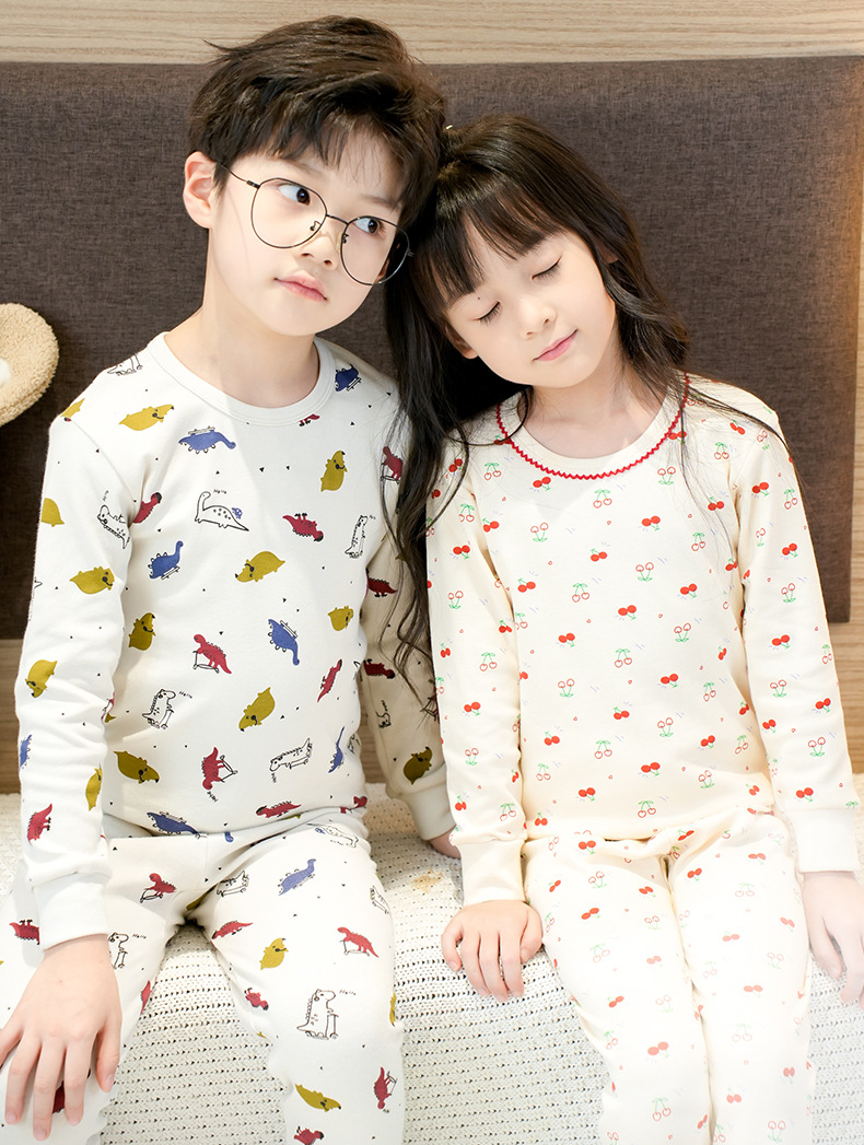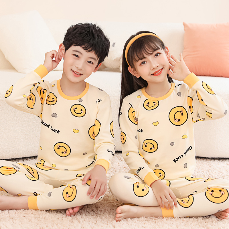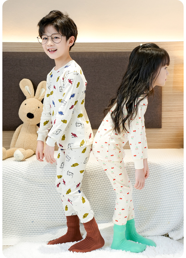 2024 년 가을과 겨울을위한 어린이 만화 코튼 스웨터 소년 소녀베이스 속옷 세트 홈 의류 파자마 투피스 세트스토어 가기