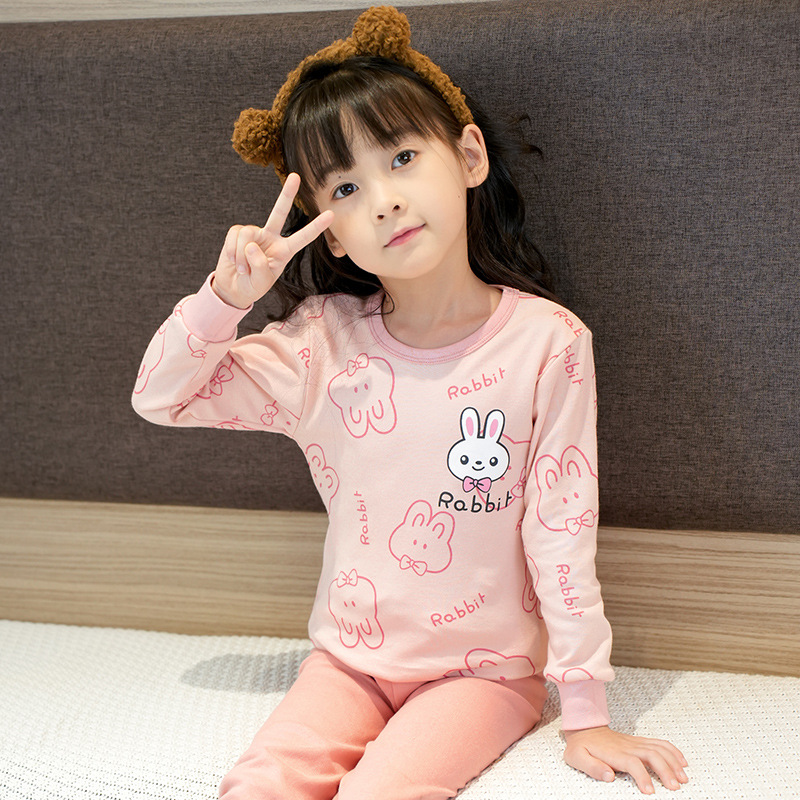 2024 년 가을과 겨울을위한 어린이 만화 코튼 스웨터 소년 소녀베이스 속옷 세트 홈 의류 파자마 투피스 세트