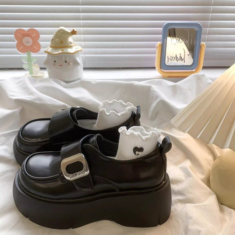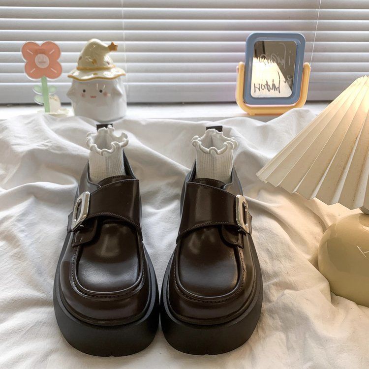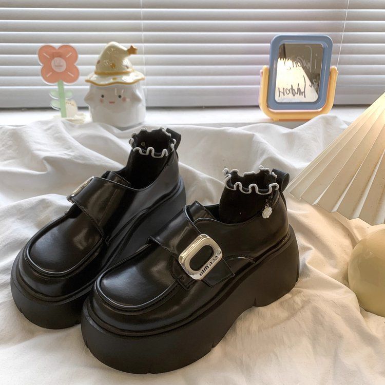 2024 가을 새로운 도착 빈티지 플랫폼 플랫폼 작은 가죽 신발 여성을위한 영국 스타일 싱글 레이어 신발 두꺼운 굽 높이 증가스토어 가기