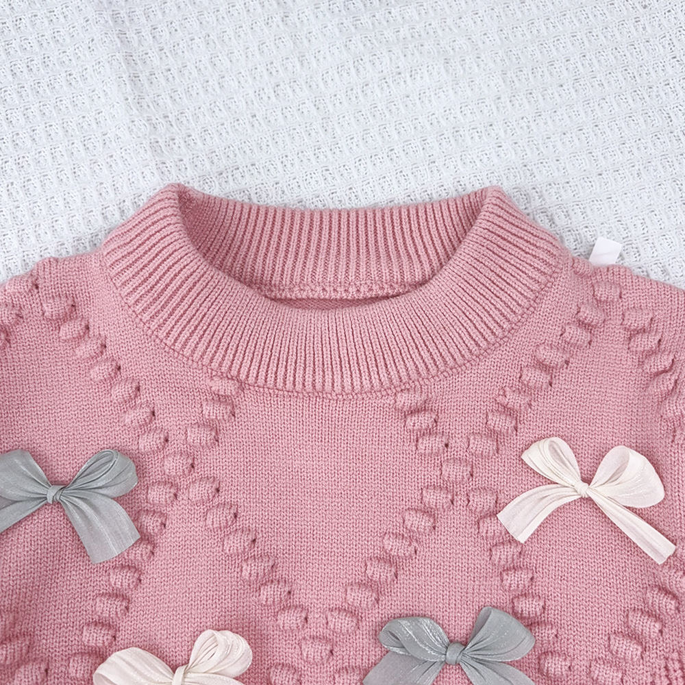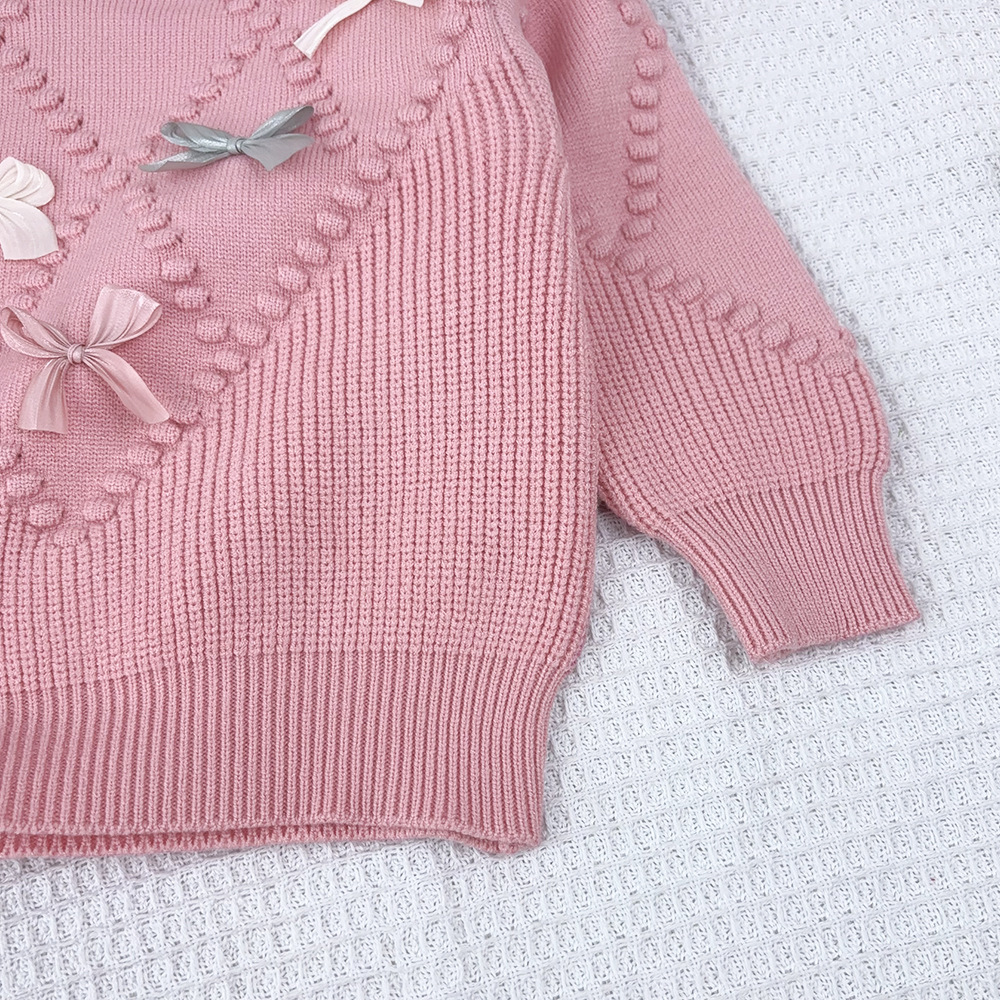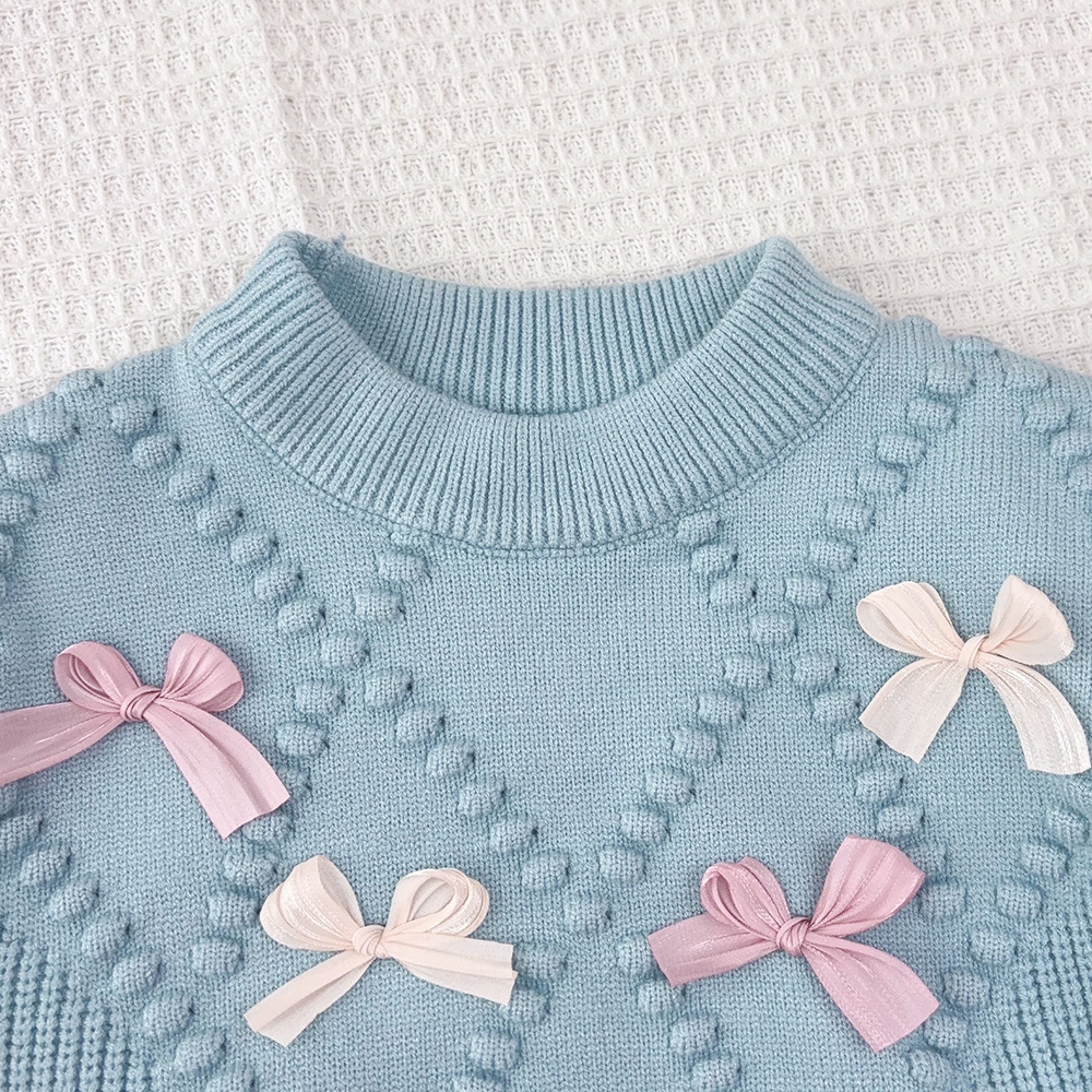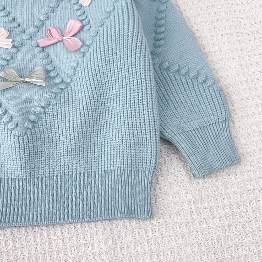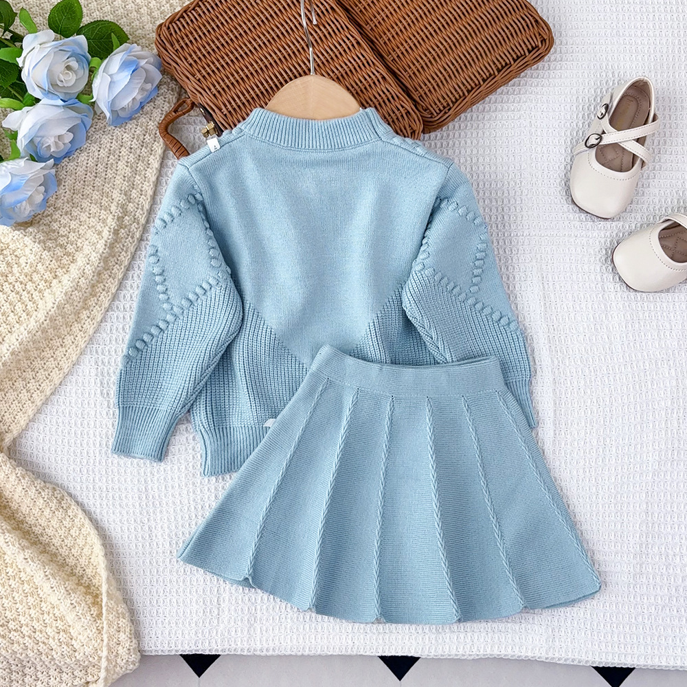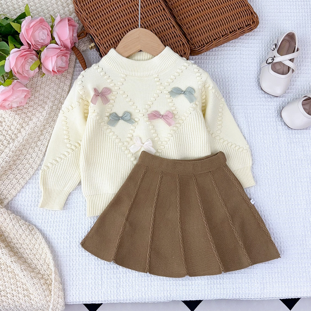 한국 아동복 2025 가을 겨울 신상 여아 입체 뜨개질 리본 저채도 니트 스웨터 스커트 세트