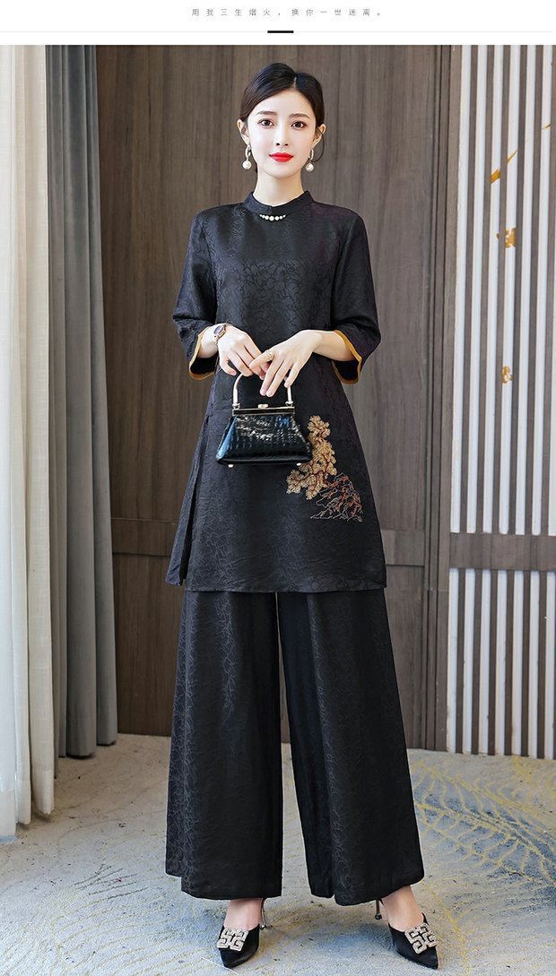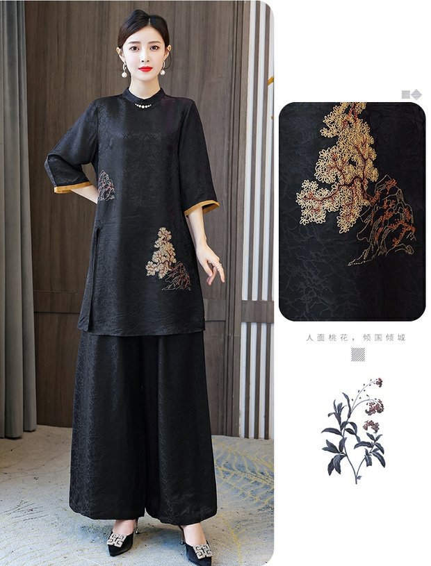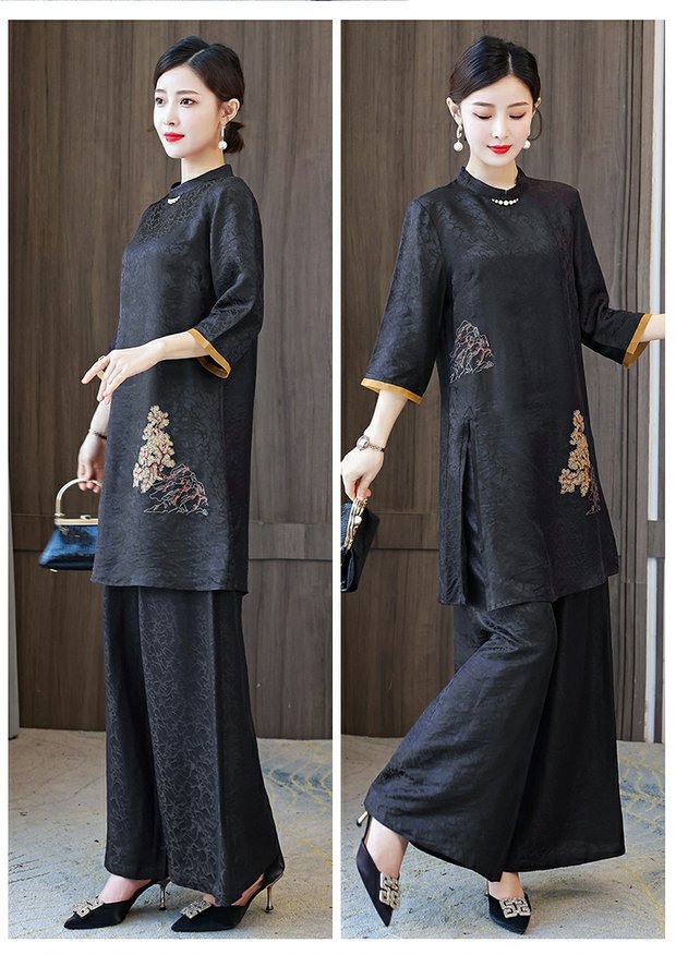 우아한 샹윤 원사 실크 패션 세트 여성의 새로운 봄 뽕나무 실크 와이드 레그 바지 투피스 탑 원피스스토어 가기