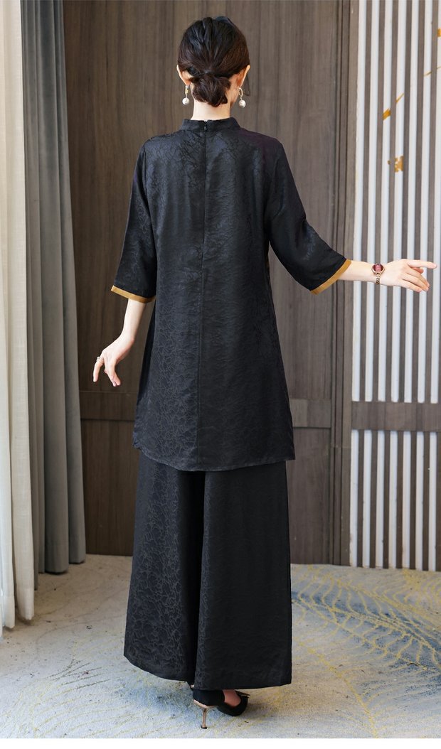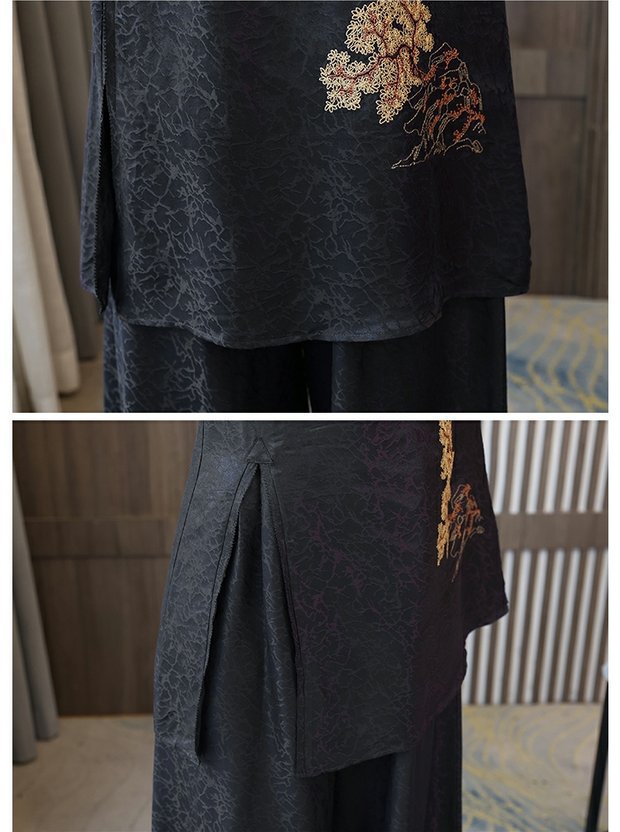 우아한 샹윤 원사 실크 패션 세트 여성의 새로운 봄 뽕나무 실크 와이드 레그 바지 투피스 탑 원피스