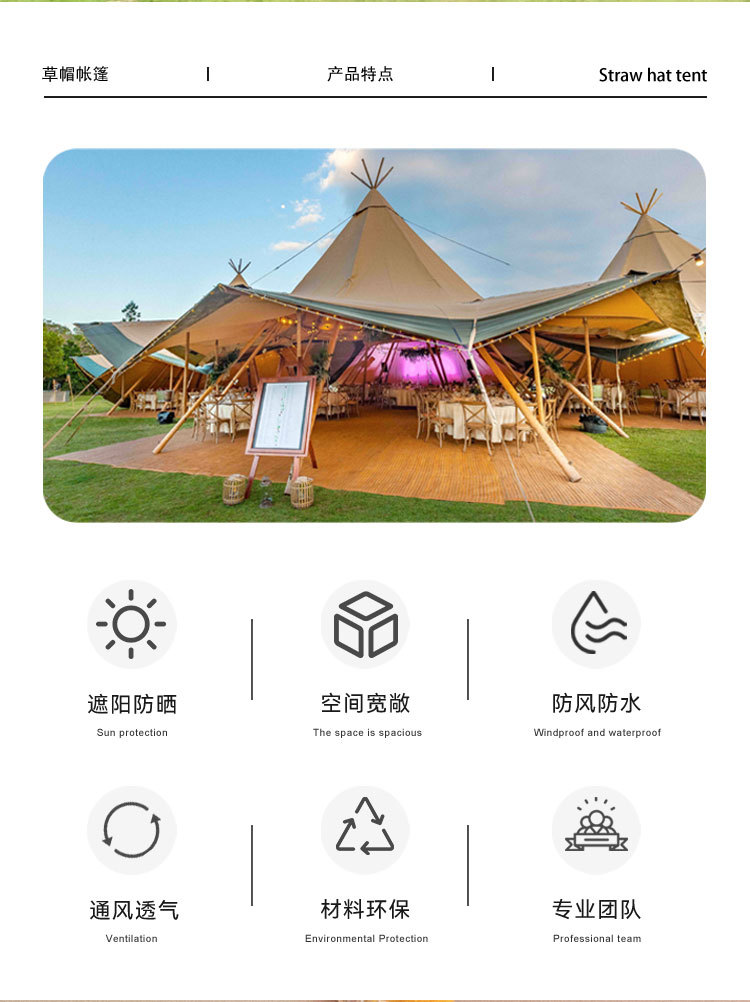 야외 텐트 상업용 솔리드 우드 티피 빅 밀짚 모자 텐트 맞춤형 인도 텐트 레스토랑 이벤트 텐트