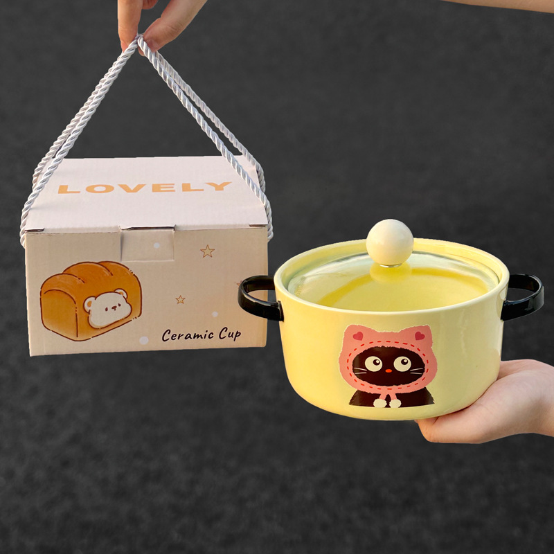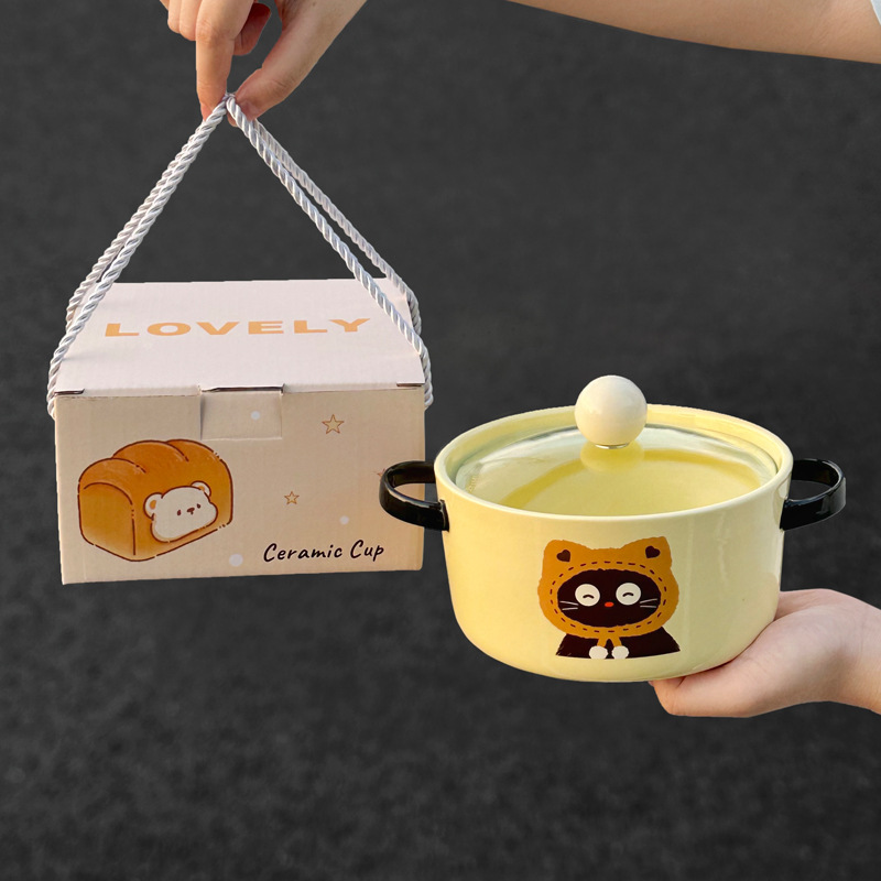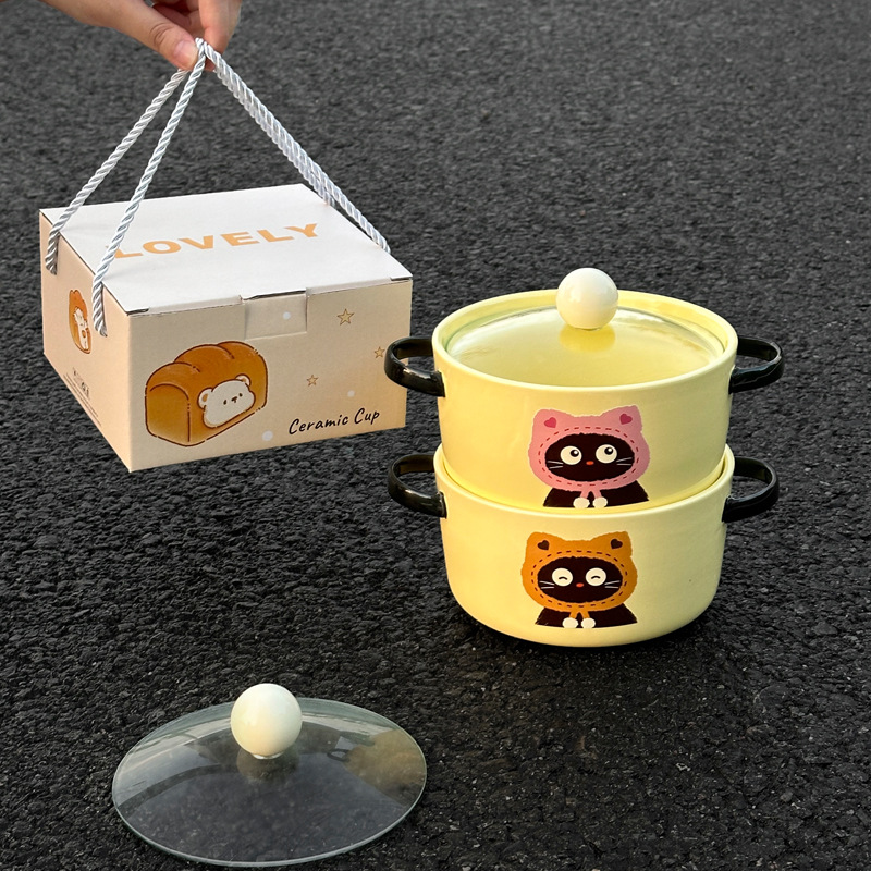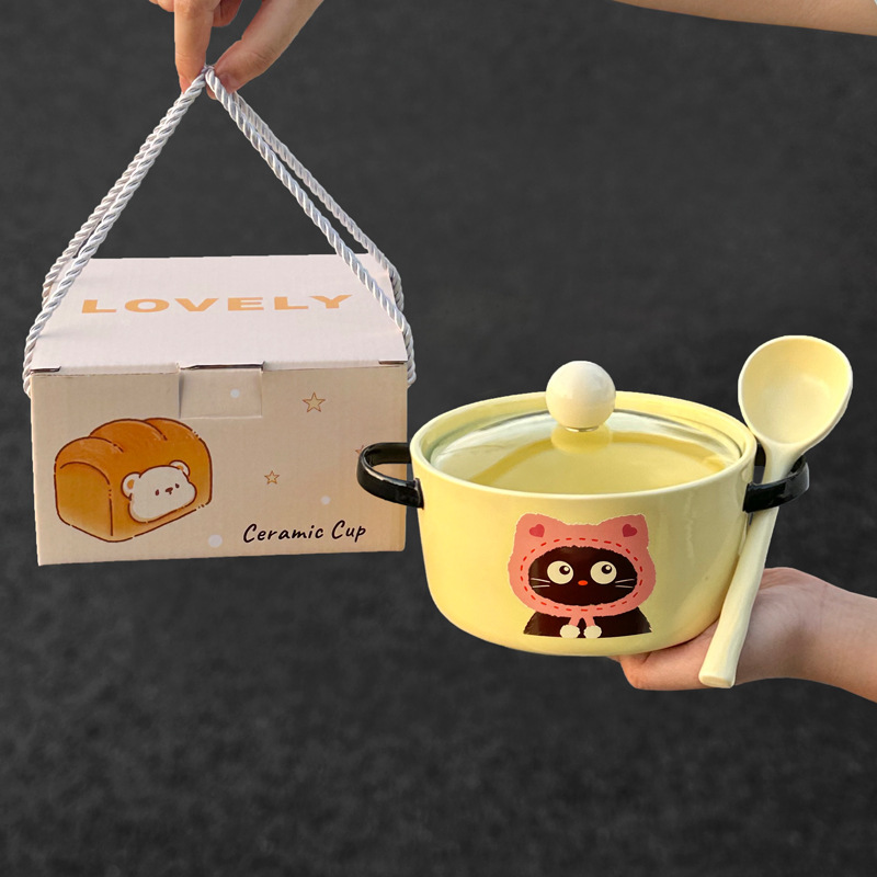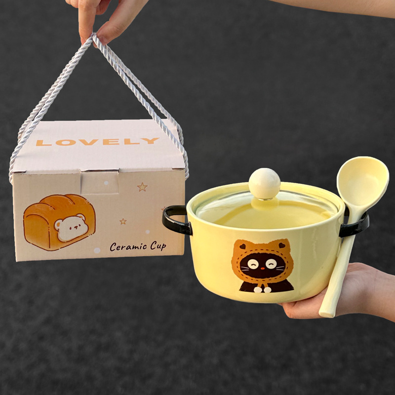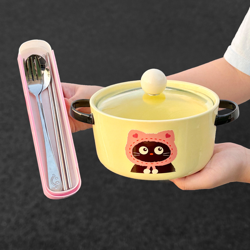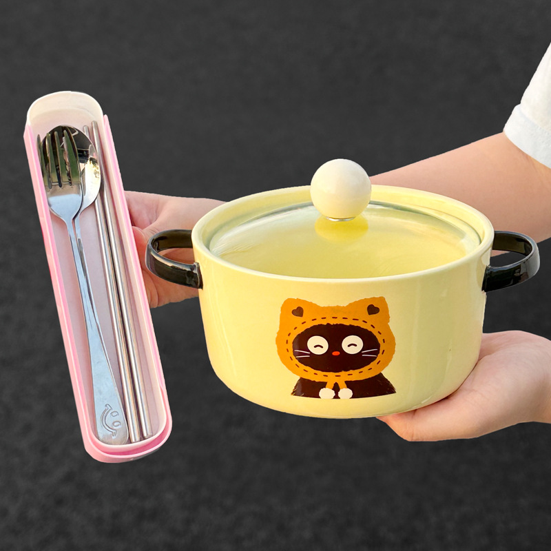 Ins 스타일 귀여운 고양이 세라믹 즉석 국수 그릇 소녀 생일 선물 동반식을위한 학생 기숙사 즉석 국수 그릇